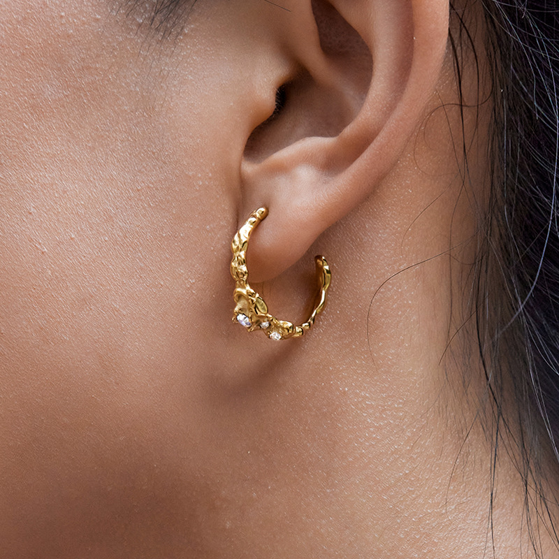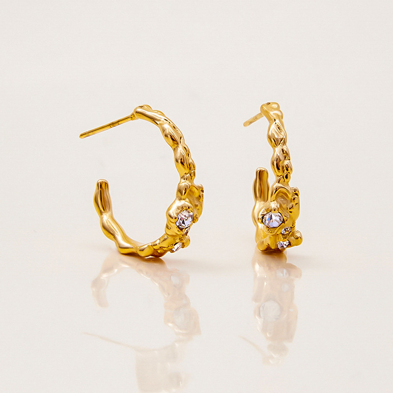 Cruach dhosmálta Graí Earrings, 304 Cruach dhosmálta, plátáilte, jewelry faisin & do bhean & le rhinestone, órga, Díolta De réir Péire
