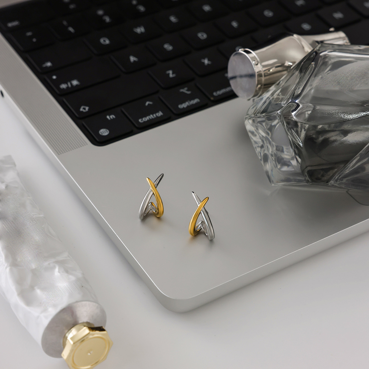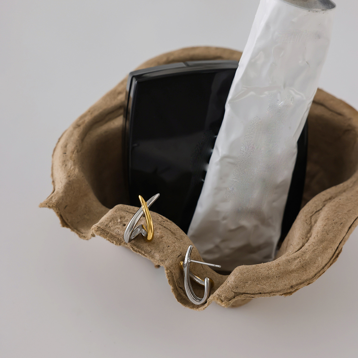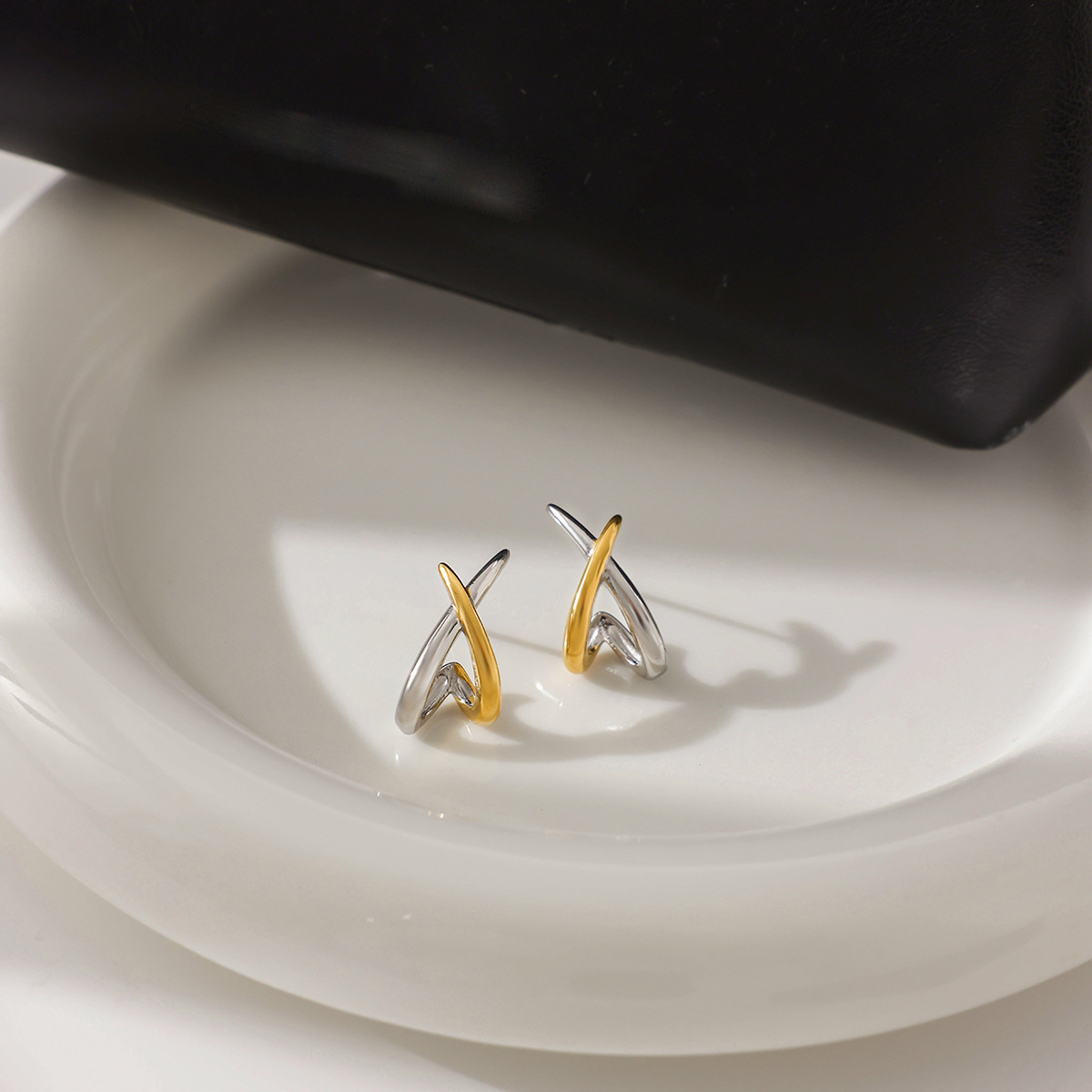 Cruach dhosmálta Graí Earrings, 304 Cruach dhosmálta, plátáilte, do bhean & dhá ton & log, Díolta De réir Péire