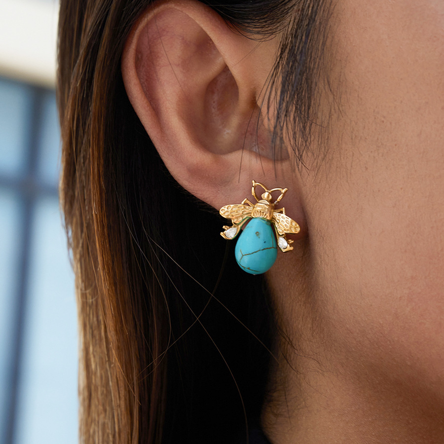 Cruach dhosmálta Graí Earrings, 304 Cruach dhosmálta, le turquoise & Pearl Plaisteacha, plátáilte, ábhair éagsúla do rogha & micrea réiteach zirconia ciúbach & do bhean, órga, Díolta De réir Péire