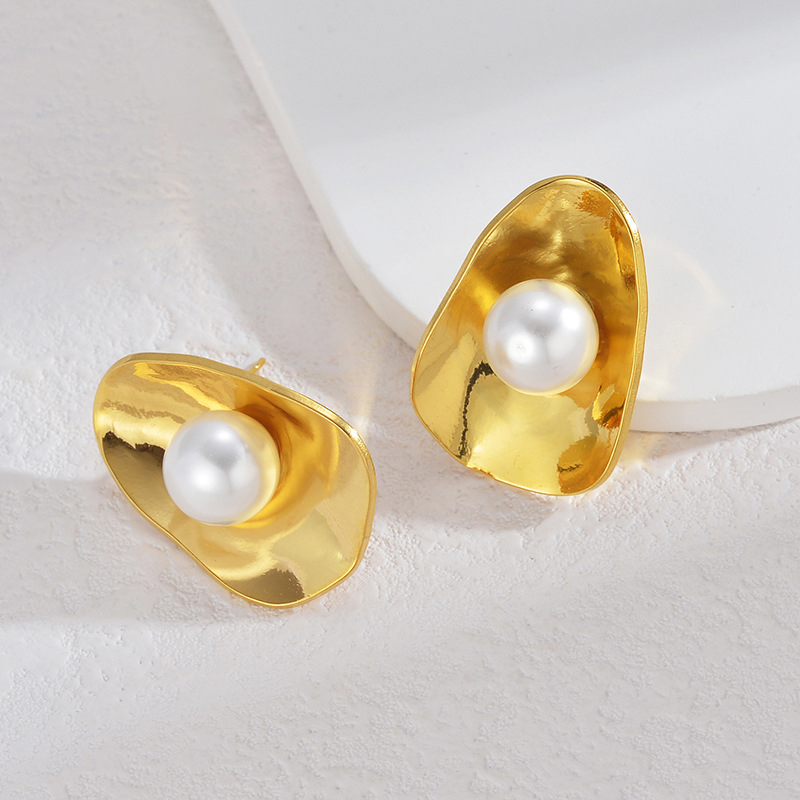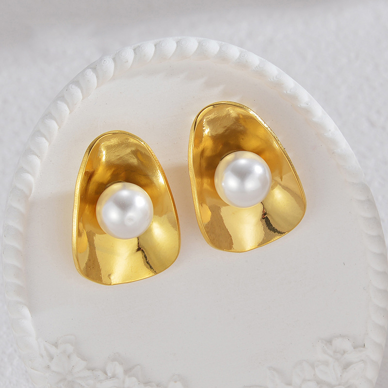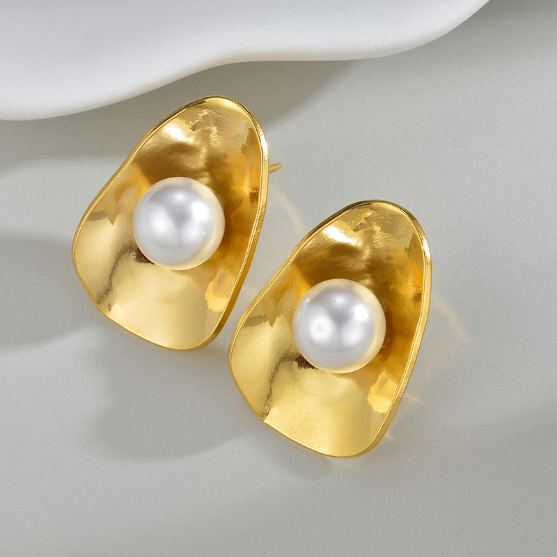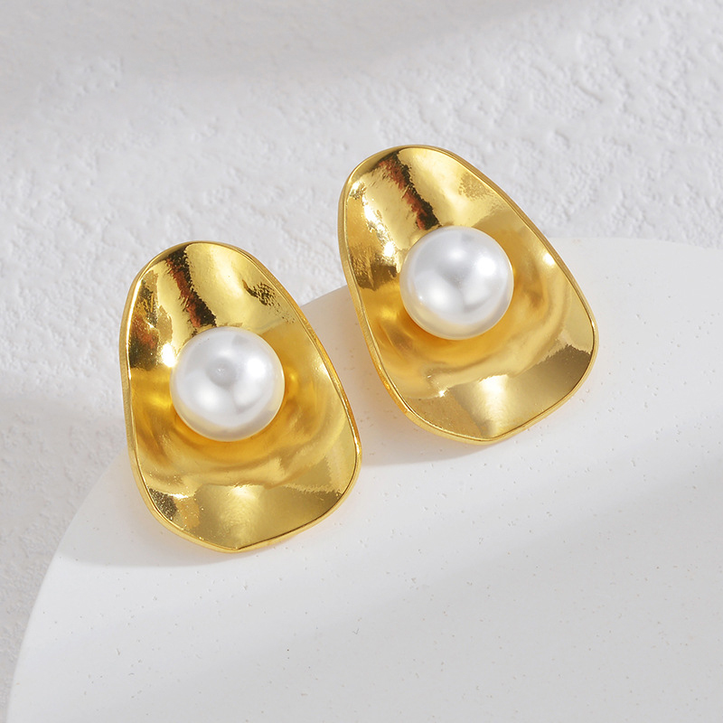 Cruach dhosmálta Graí Earrings, 304 Cruach dhosmálta, le Pearl Plaisteacha, plátáilte, jewelry faisin & do bhean, órga, Díolta De réir Péire