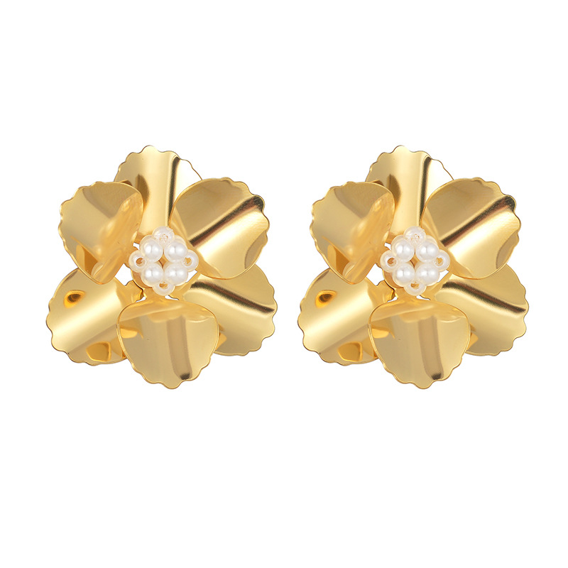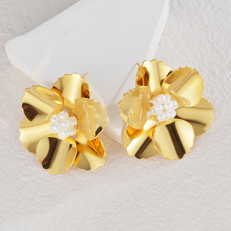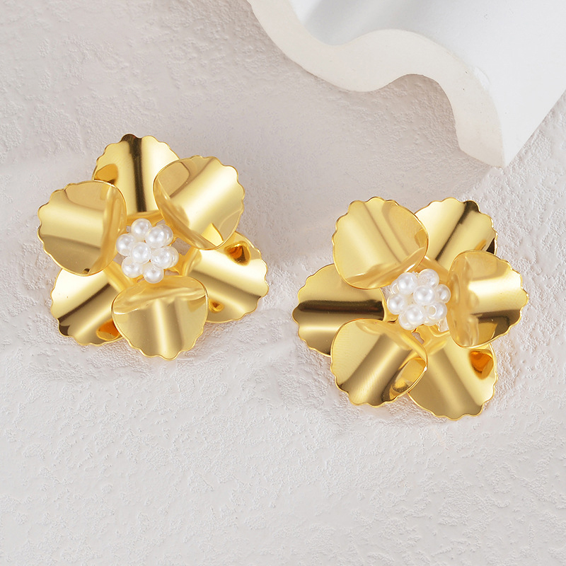 Cruach dhosmálta Graí Earrings, 304 Cruach dhosmálta, le Pearl Plaisteacha, Flower, plátáilte, jewelry faisin & do bhean, órga, Díolta De réir Péire