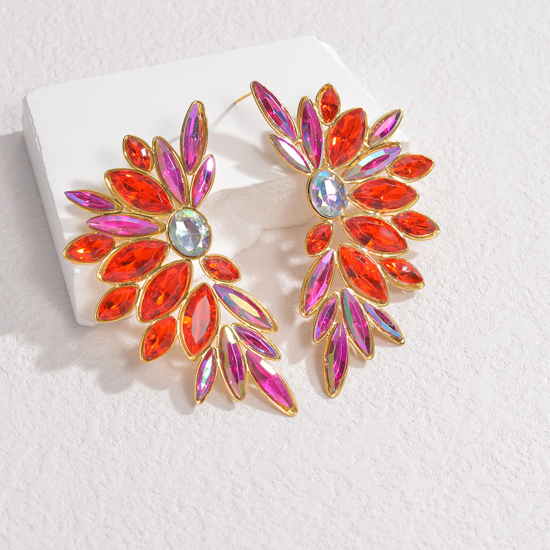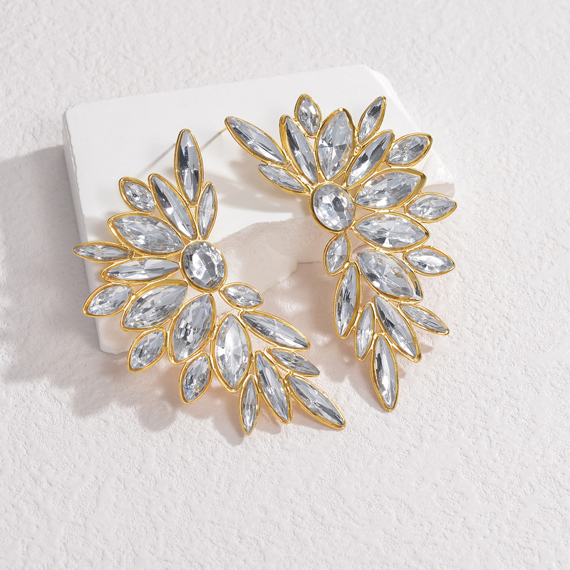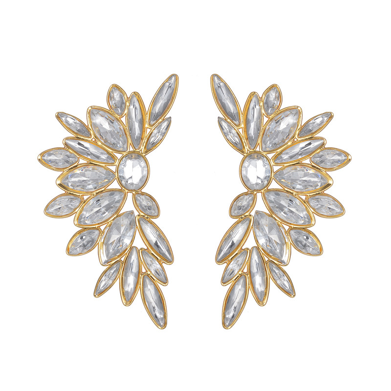 Cruach dhosmálta Graí Earrings, 304 Cruach dhosmálta, Leaf, plátáilte, jewelry faisin & do bhean & le rhinestone, órga, Díolta De réir Péire