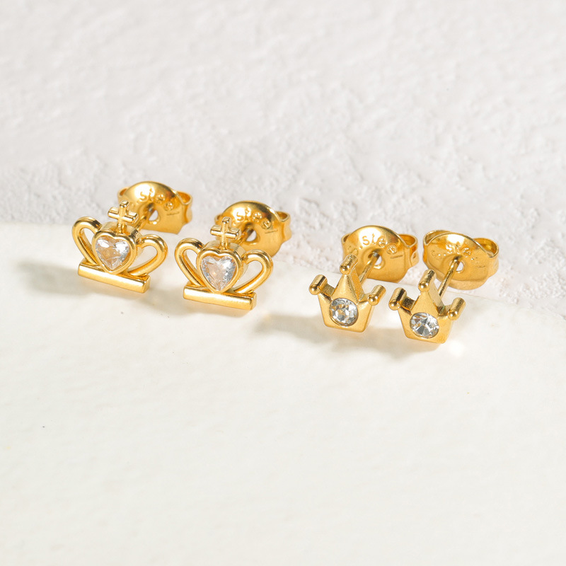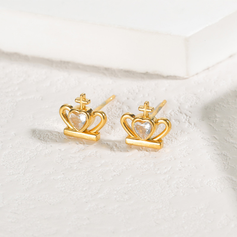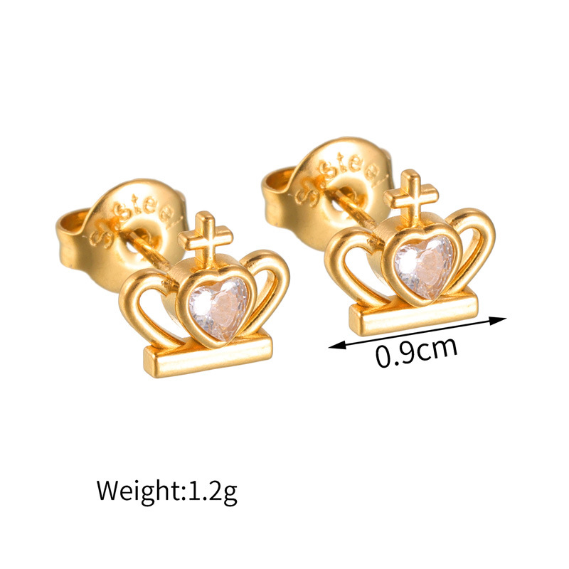 Cruach dhosmálta Graí Earrings, 304 Cruach dhosmálta, Corónach, plátáilte, méid éagsúla do rogha & do bhean & le rhinestone, órga, Díolta De réir Péire