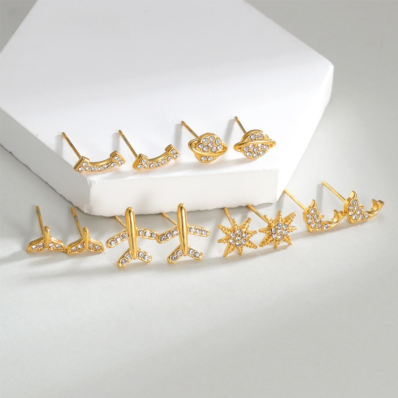 Cruach dhosmálta Graí Earrings, 304 Cruach dhosmálta, plátáilte, stíleanna éagsúla do rogha & do bhean & le rhinestone, órga, Díolta De réir Péire