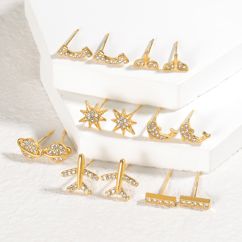 Cruach dhosmálta Graí Earrings, 304 Cruach dhosmálta, le Pearl Plaisteacha, 18K ór plátáilte, trí phíosa & stíleanna éagsúla do rogha & do bhean & le rhinestone, Díolta De réir Socraigh