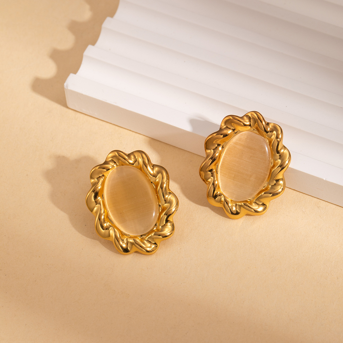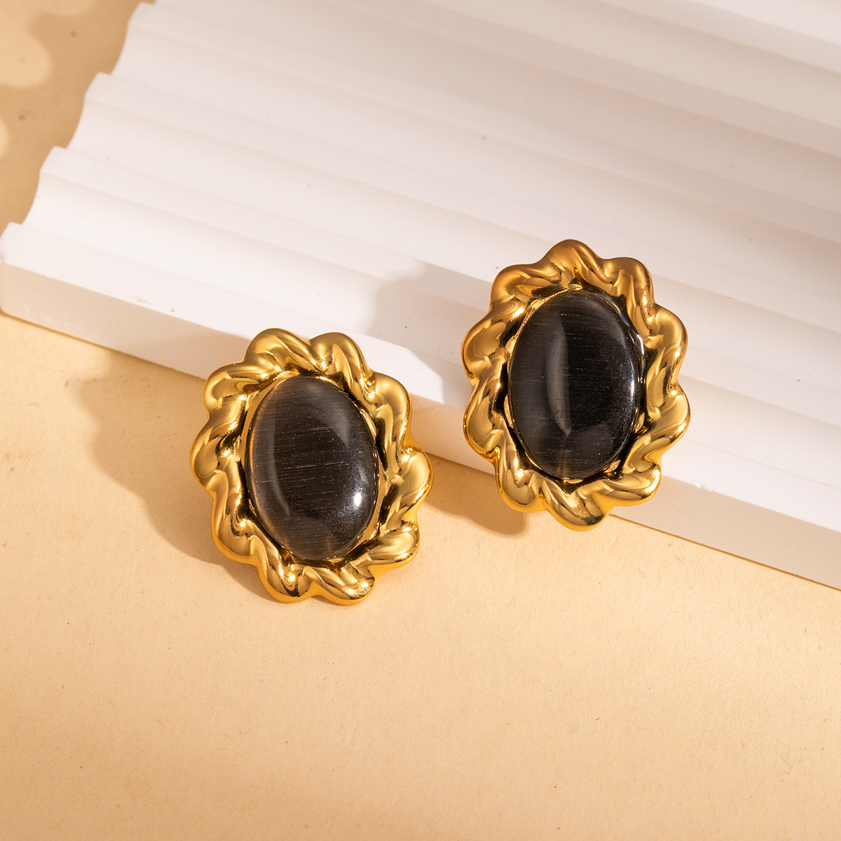 Cruach dhosmálta Graí Earrings, 304 Cruach dhosmálta, le Gemstone, dath an óir plated, jewelry faisin & do bhean, dathanna níos mó le haghaidh rogha, Díolta De réir Péire