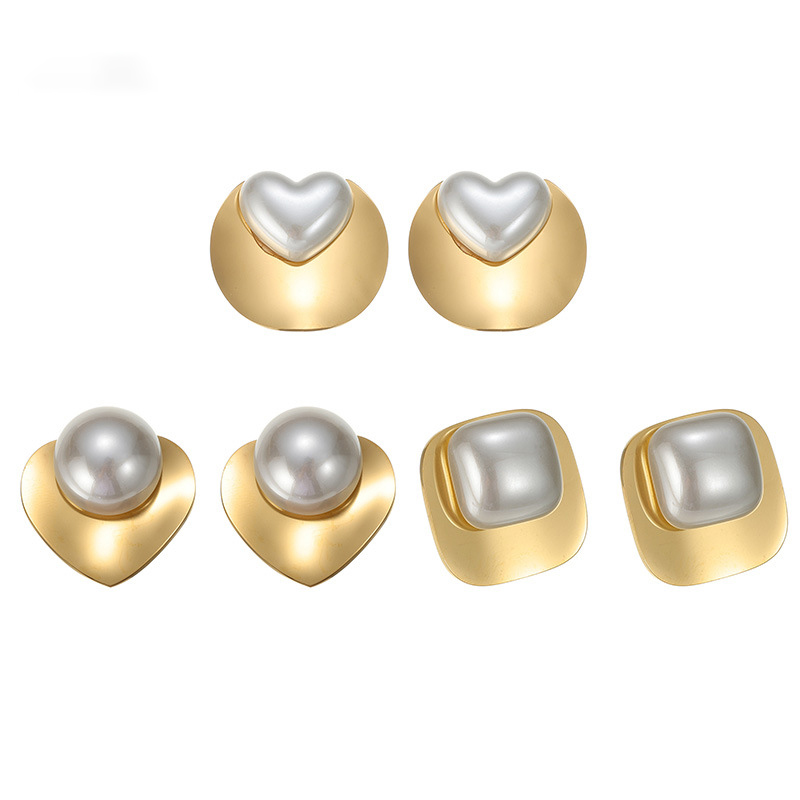Cruach dhosmálta Graí Earrings, 304 Cruach dhosmálta, le Pearl Plaisteacha, 18K ór plátáilte, trí phíosa & stíleanna éagsúla do rogha & do bhean & le rhinestone, Díolta De réir Socraigh
