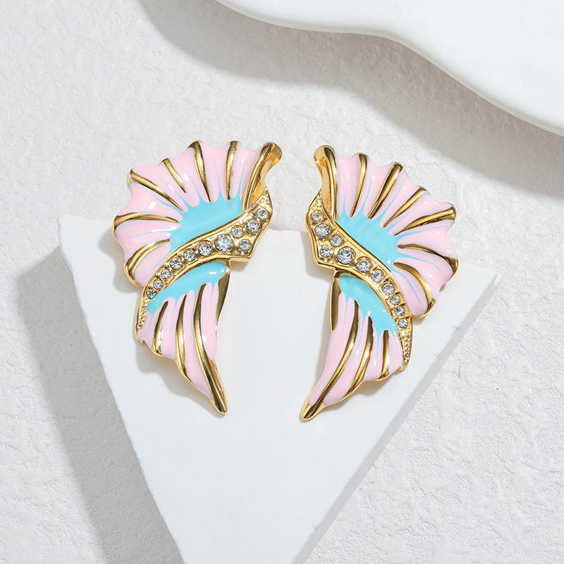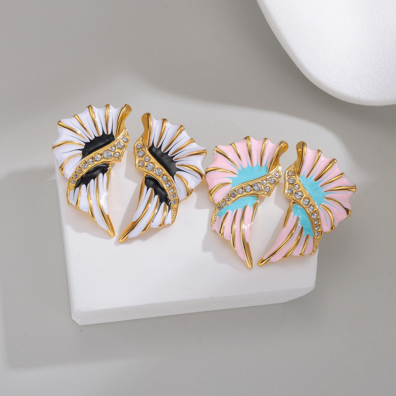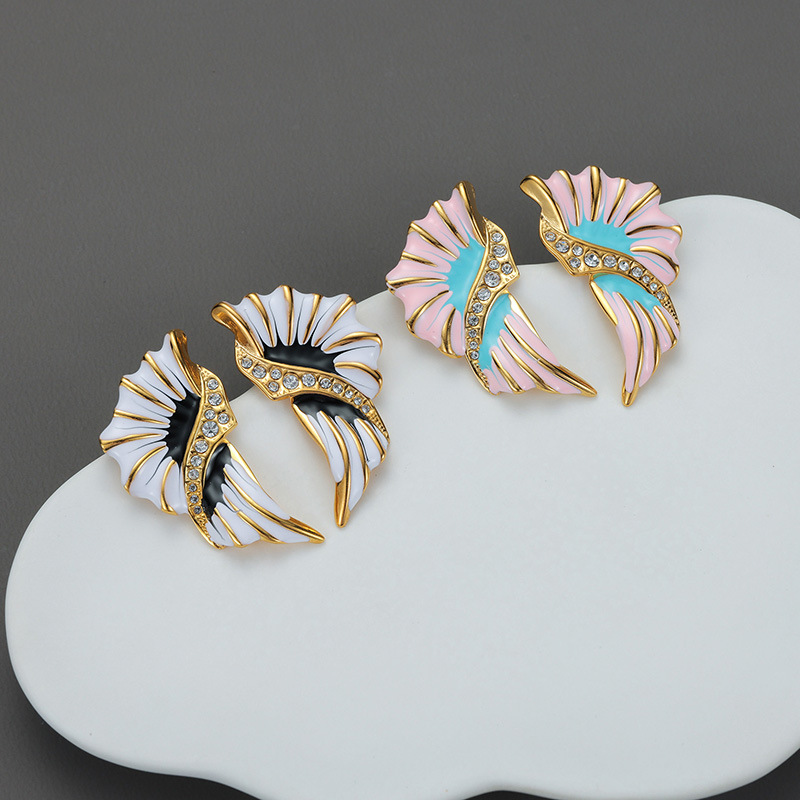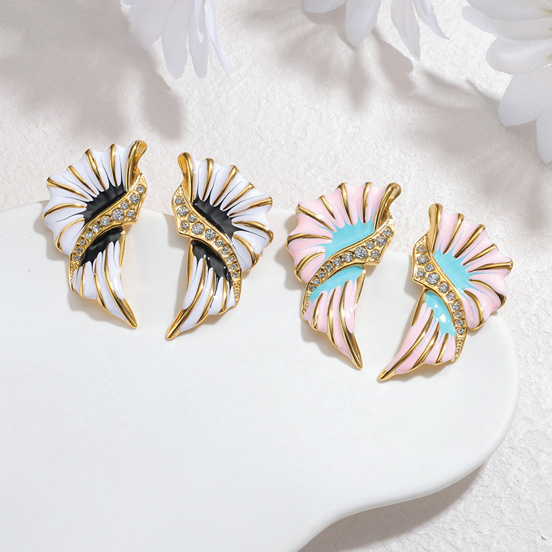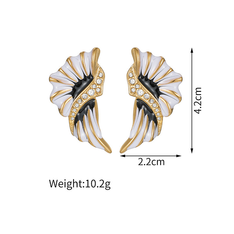 Cruach dhosmálta Graí Earrings, 304 Cruach dhosmálta, Cruth Sciathán, dath an óir plated, do bhean & cruan & le rhinestone, dathanna níos mó le haghaidh rogha, Díolta De réir Péire