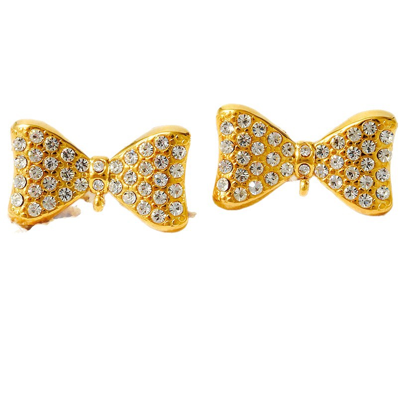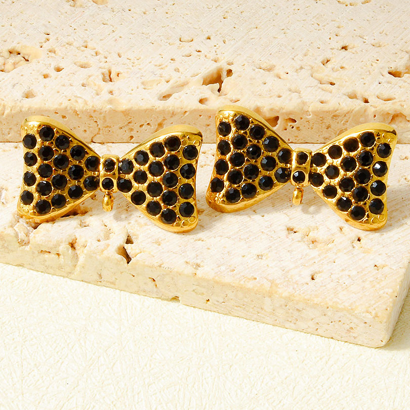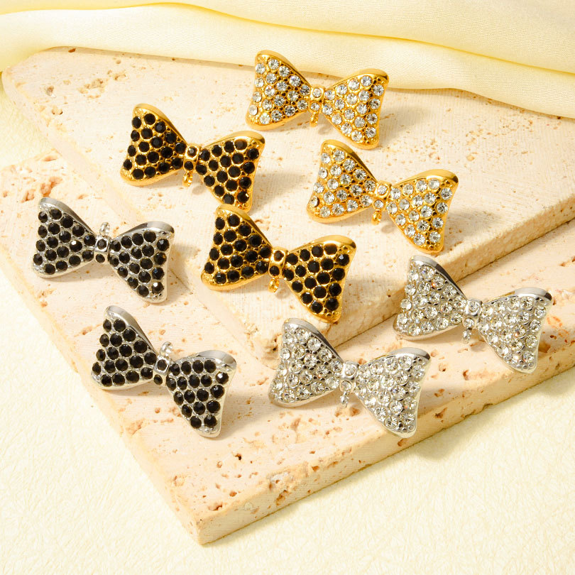 Cruach dhosmálta Graí Earrings, 304 Cruach dhosmálta, Bowknot, plátáilte, jewelry faisin & le rhinestone, dathanna níos mó le haghaidh rogha, 22.80x25.20mm, Díolta De réir Péire