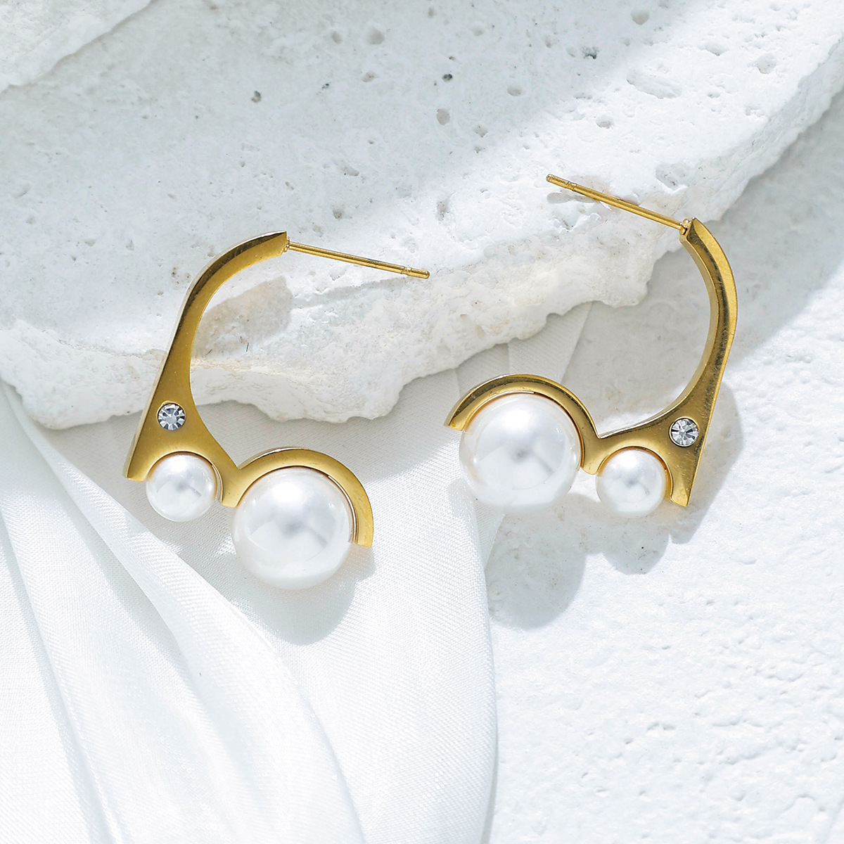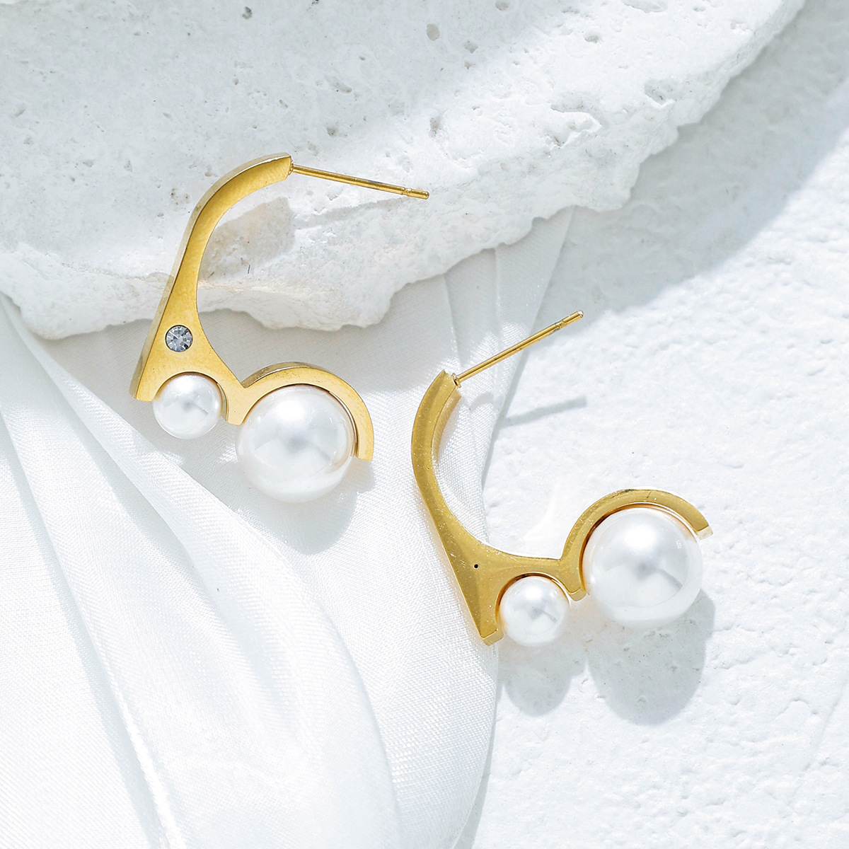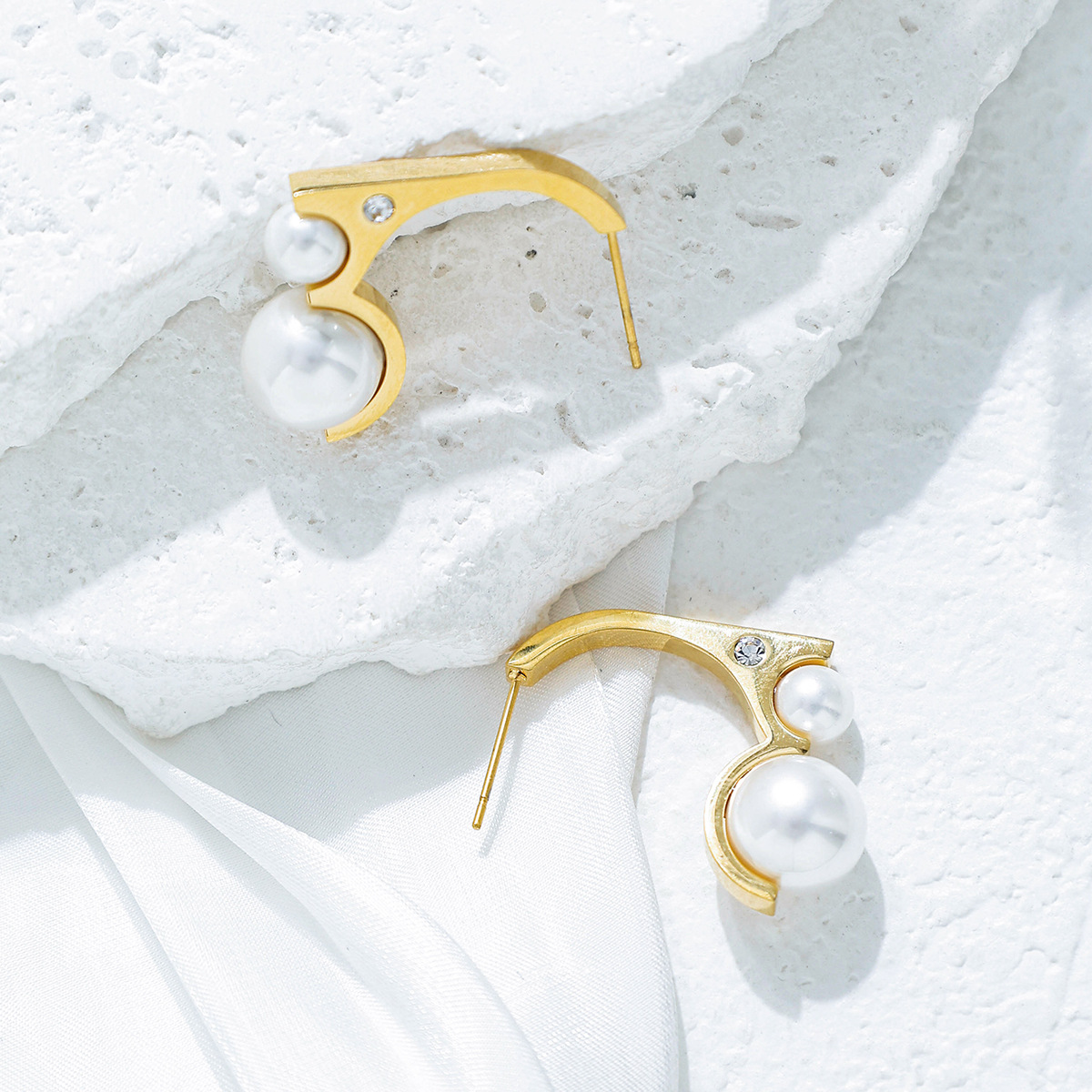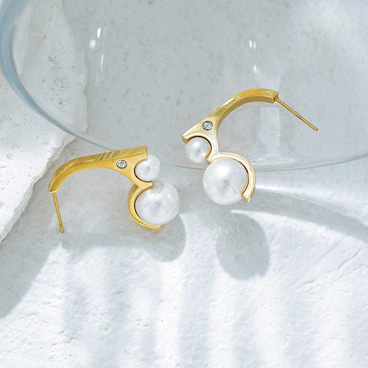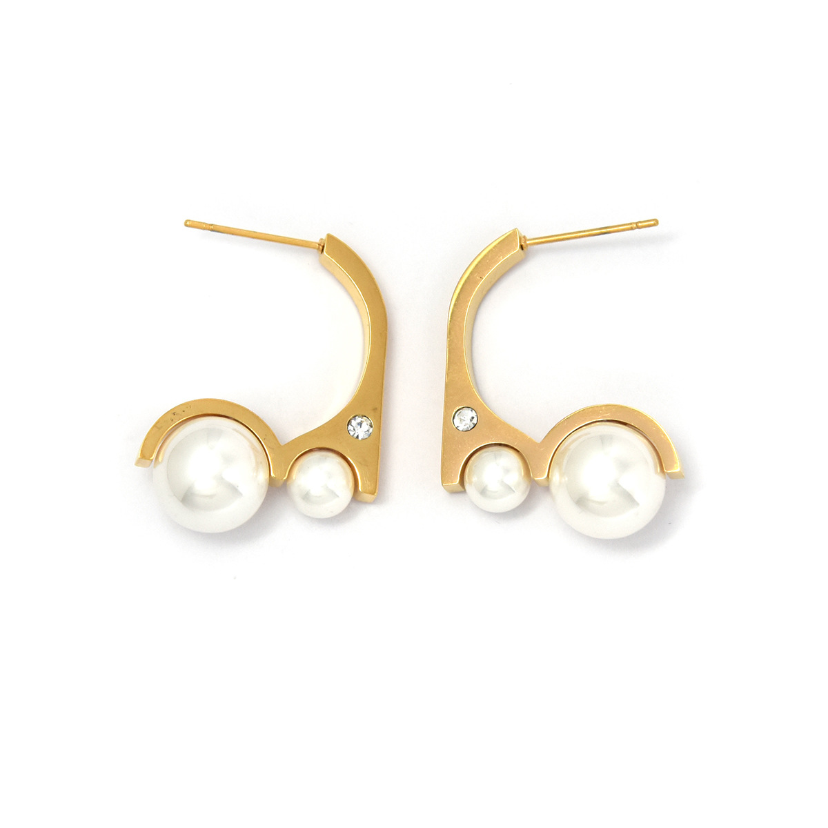 Cruach dhosmálta Graí Earrings, 304 Cruach dhosmálta, le Pearl Plaisteacha, dath an óir plated, jewelry faisin & do bhean & le rhinestone, Díolta De réir Péire