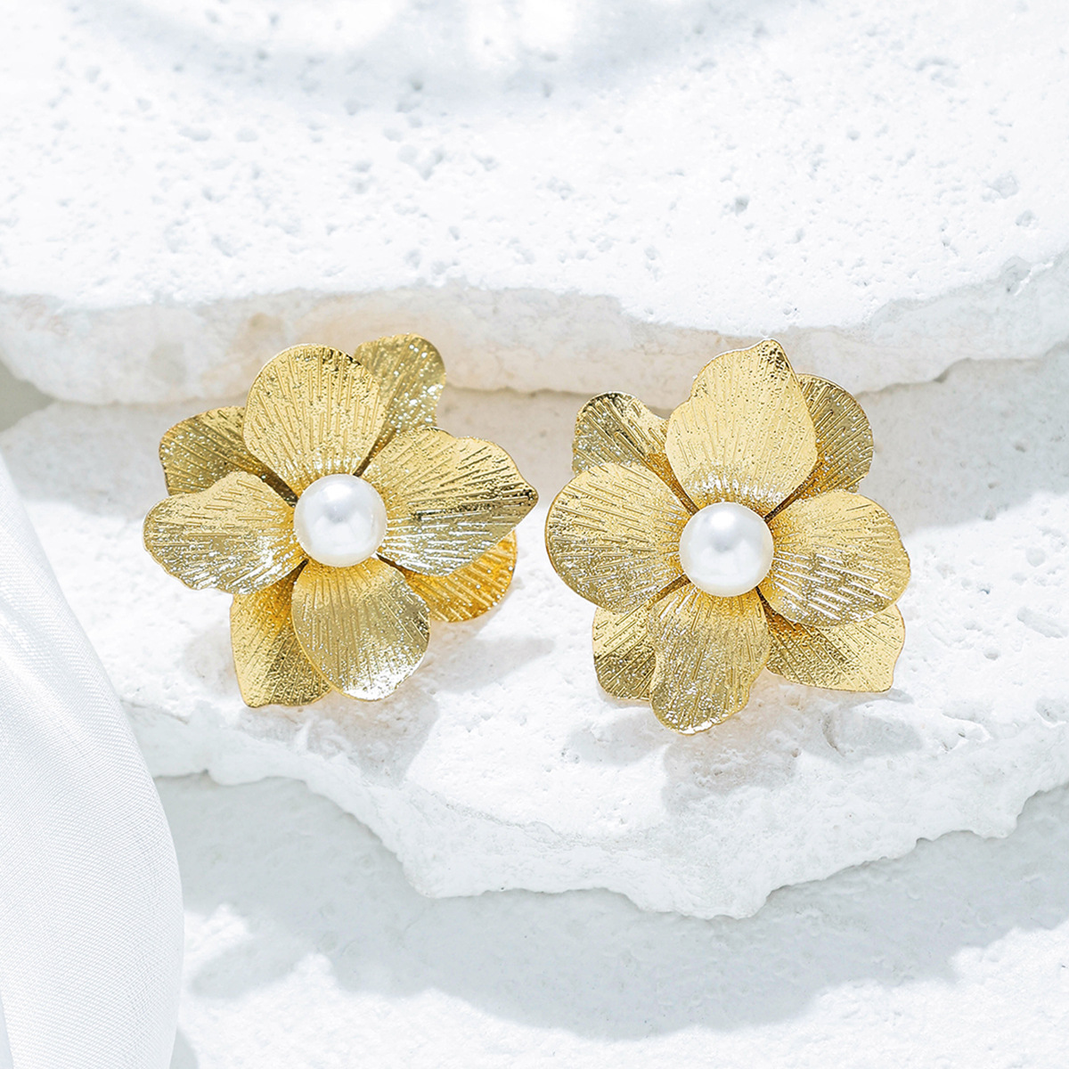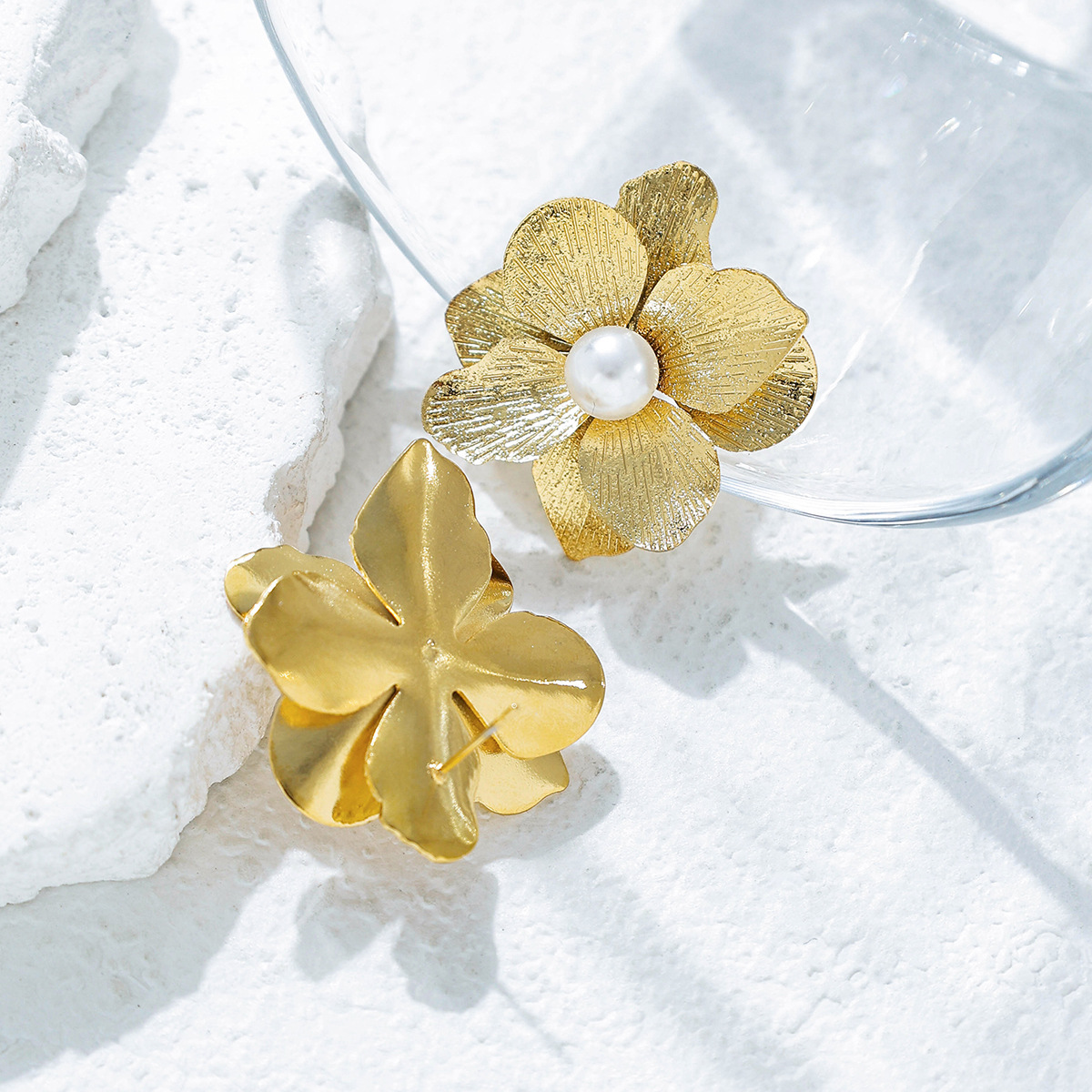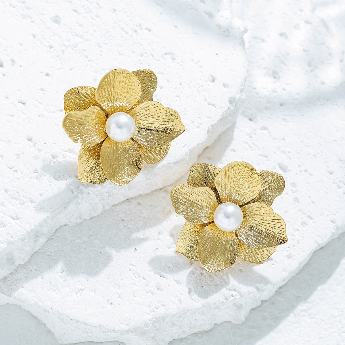 Cruach dhosmálta Graí Earrings, 304 Cruach dhosmálta, le Pearl Plaisteacha, Flower, 18K ór plátáilte, jewelry faisin & do bhean, Díolta De réir Péire