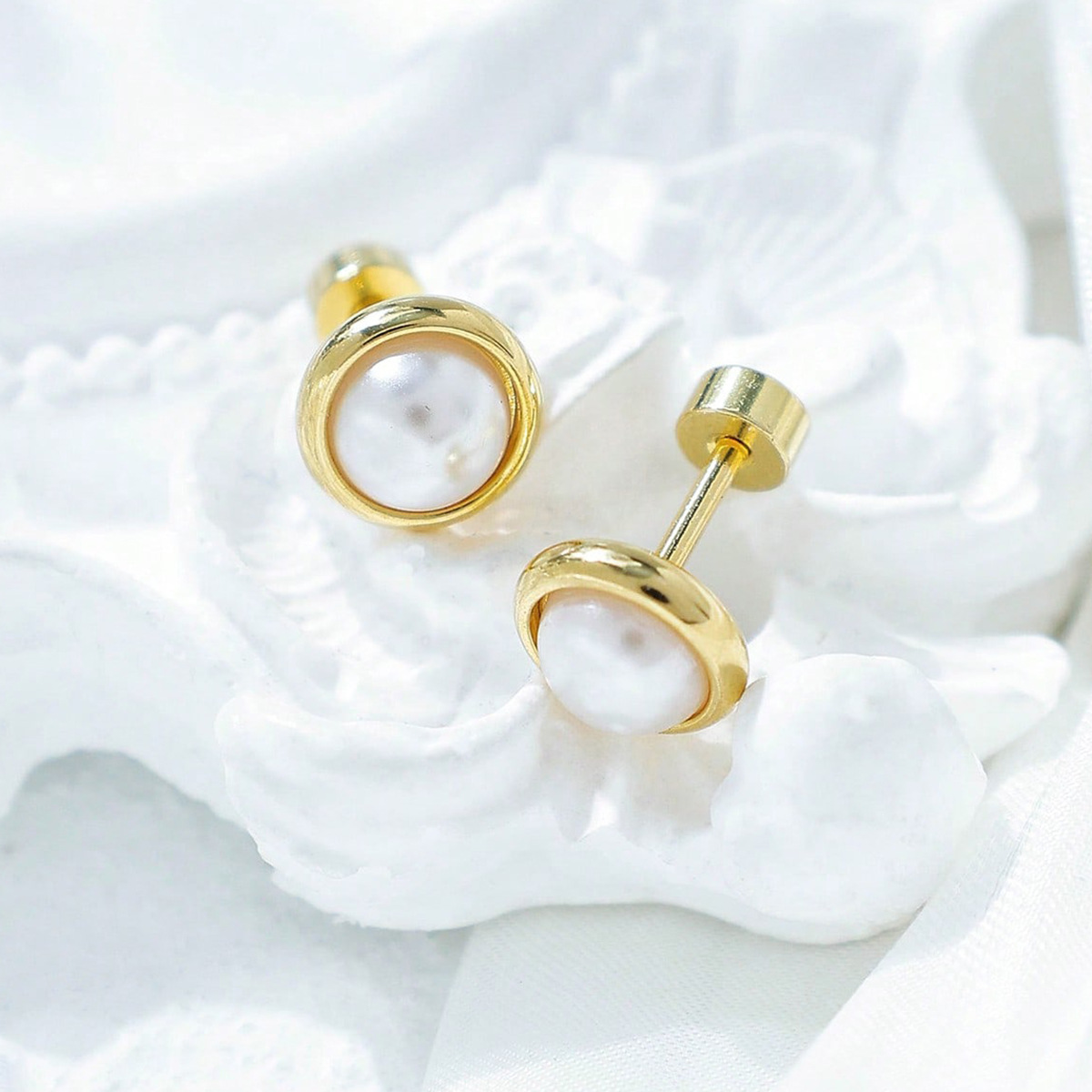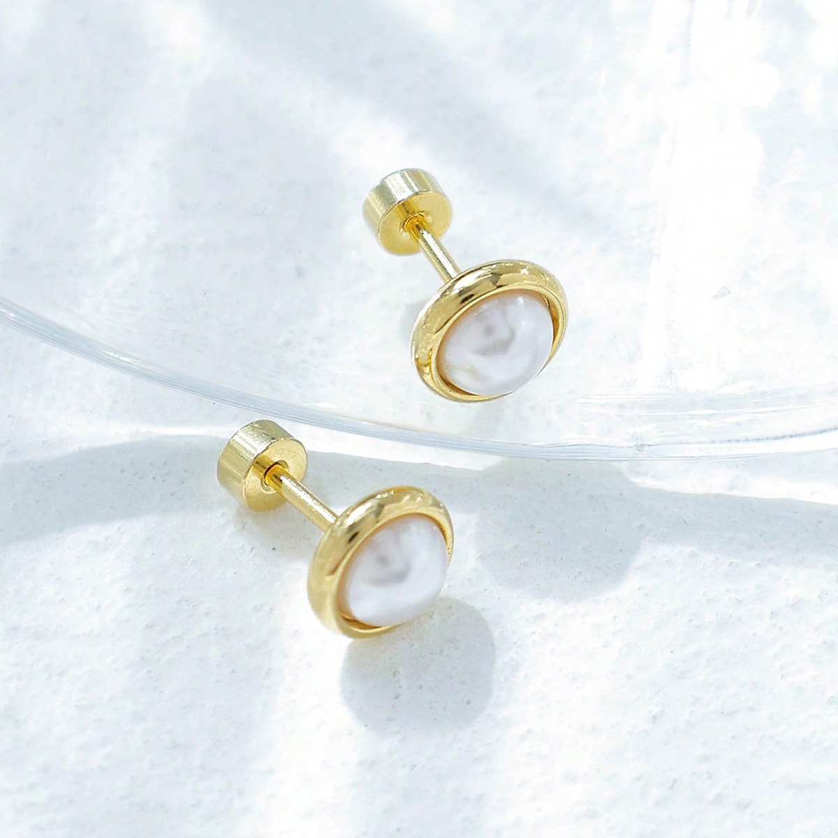 Cruach dhosmálta Graí Earrings, 304 Cruach dhosmálta, le Pearl Plaisteacha, Babhta, plátáilte, jewelry faisin & do bhean, órga, Díolta De réir Péire