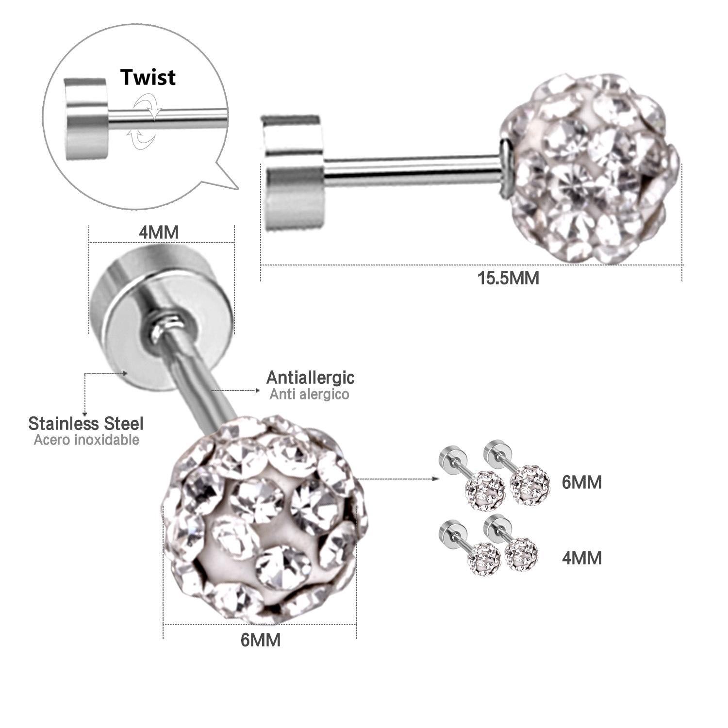 1:4mm Steel color2:4mm gold3:6mm steel color4:6mm gold