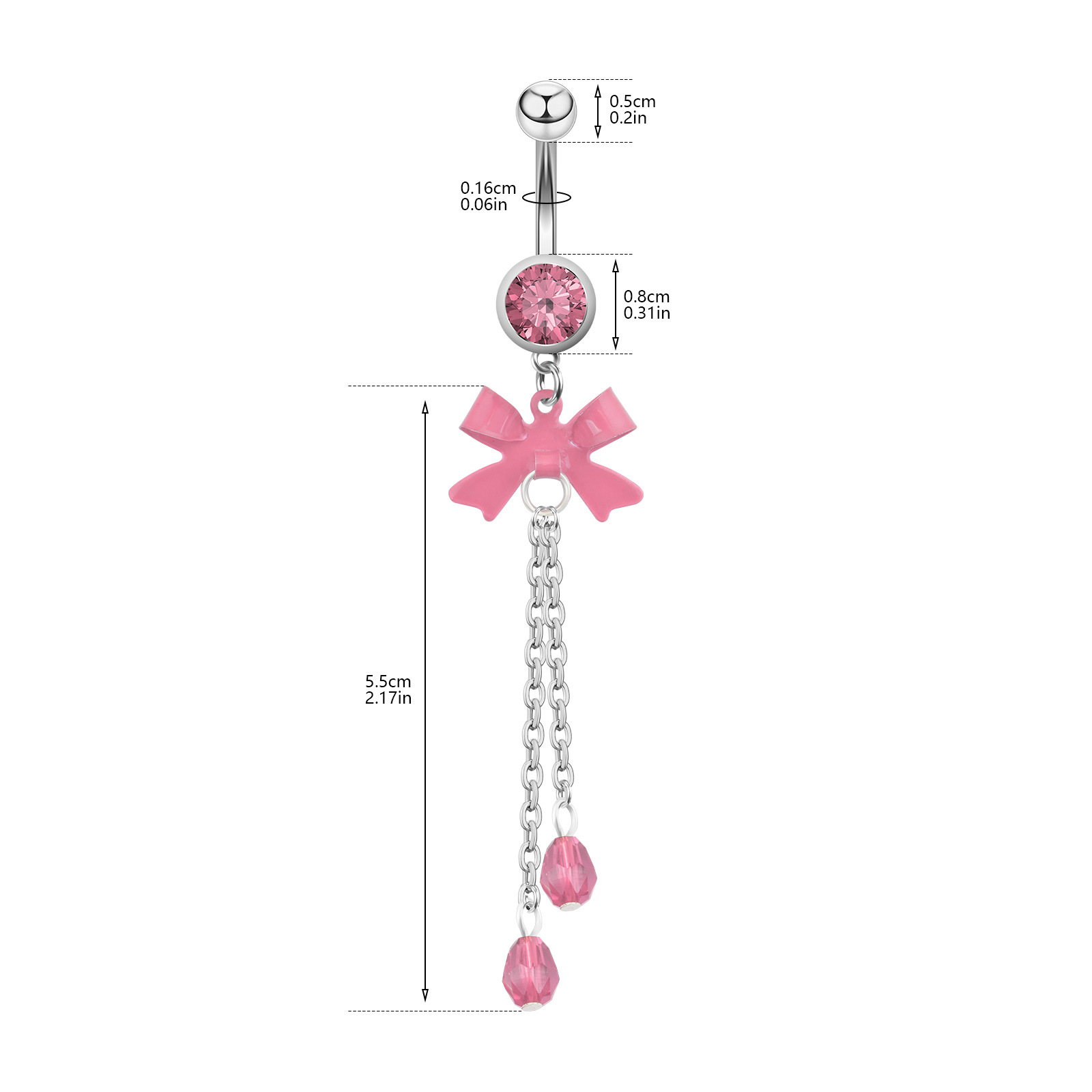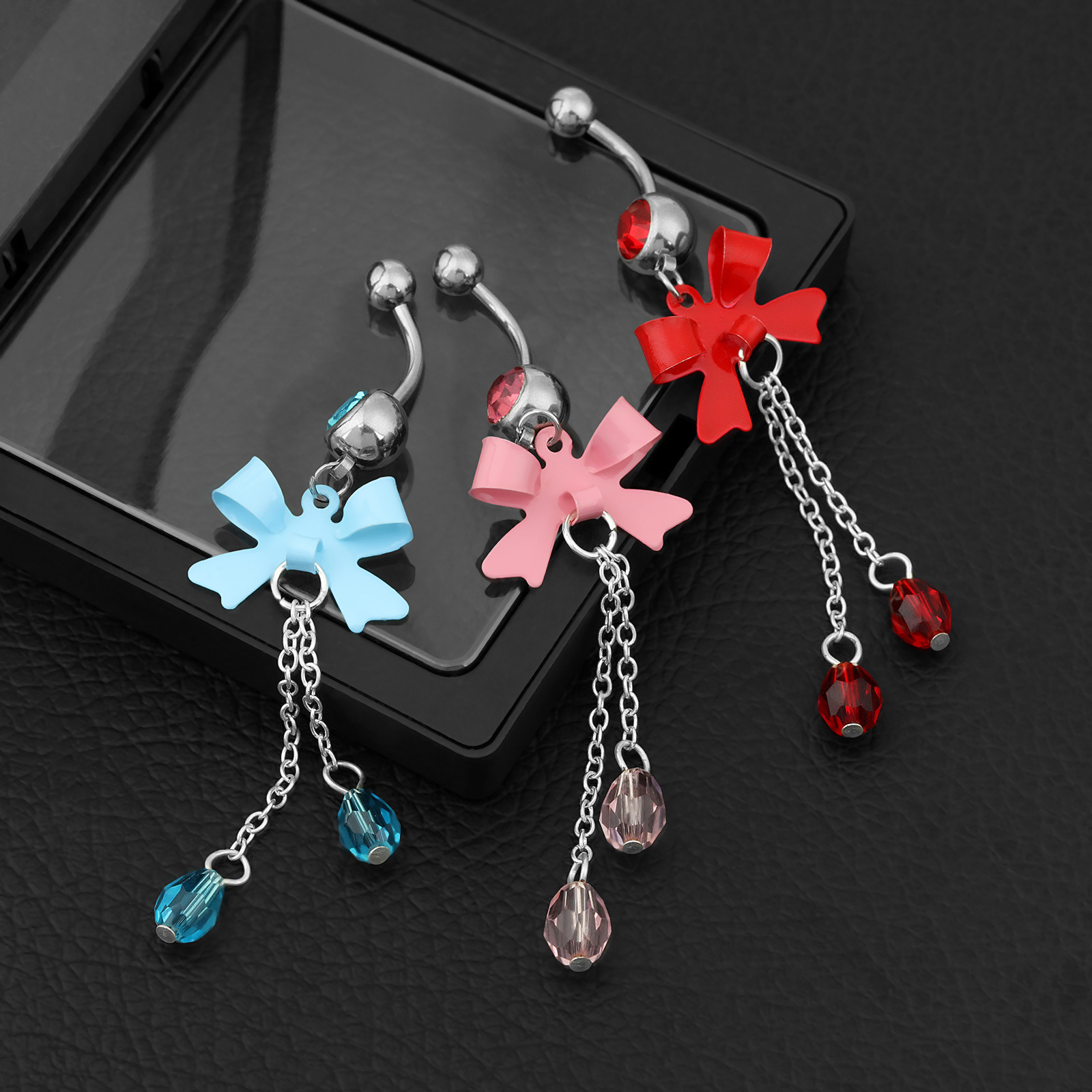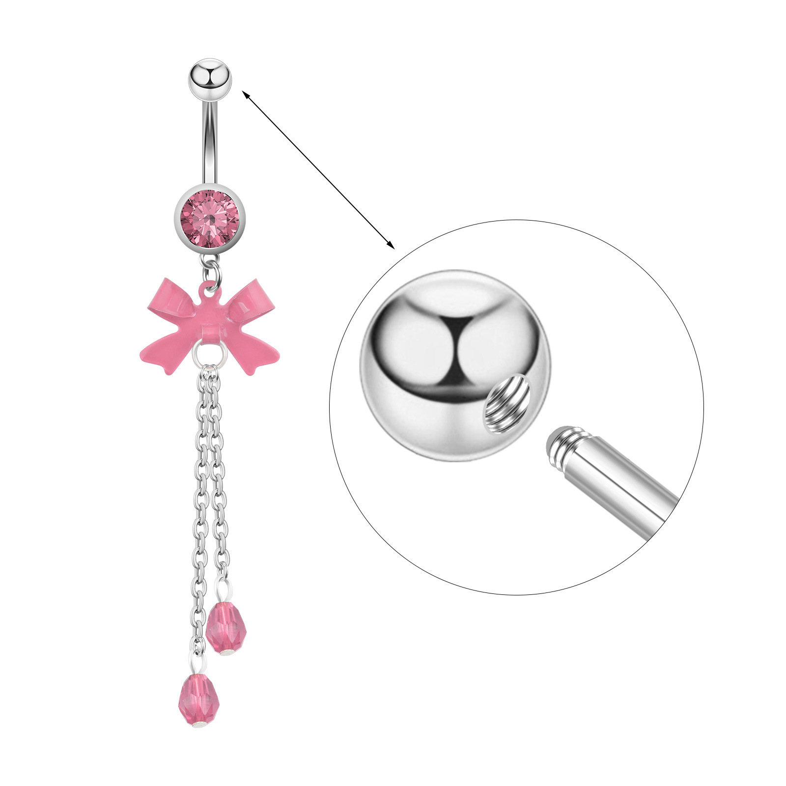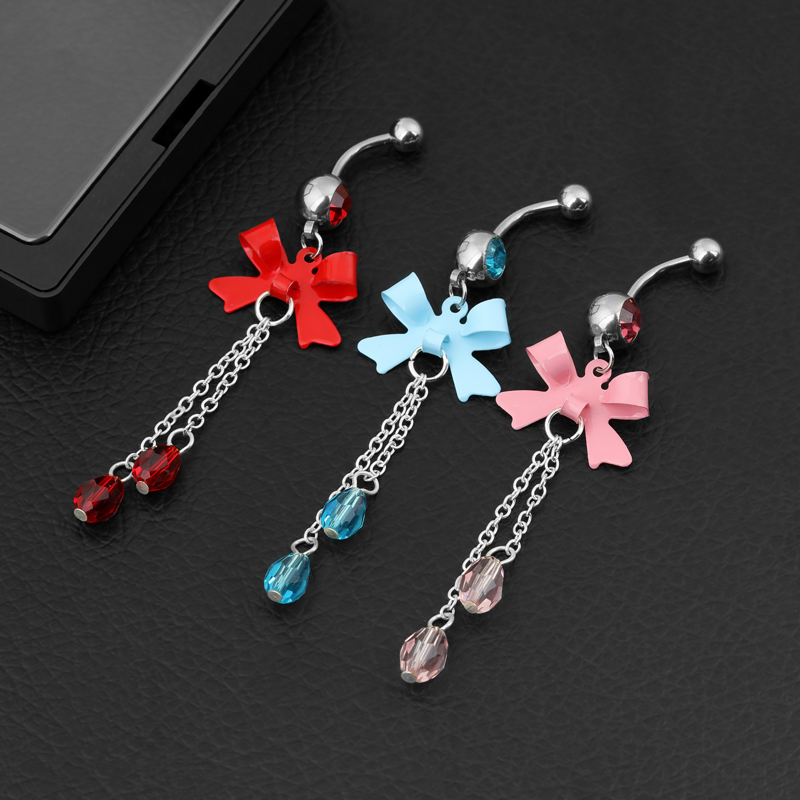 Cruach dhosmálta Ring Belly, 304 Cruach dhosmálta, Bowknot, dath airgid plated, jewelry faisin & le rhinestone, dathanna níos mó le haghaidh rogha, Díolta De réir PC