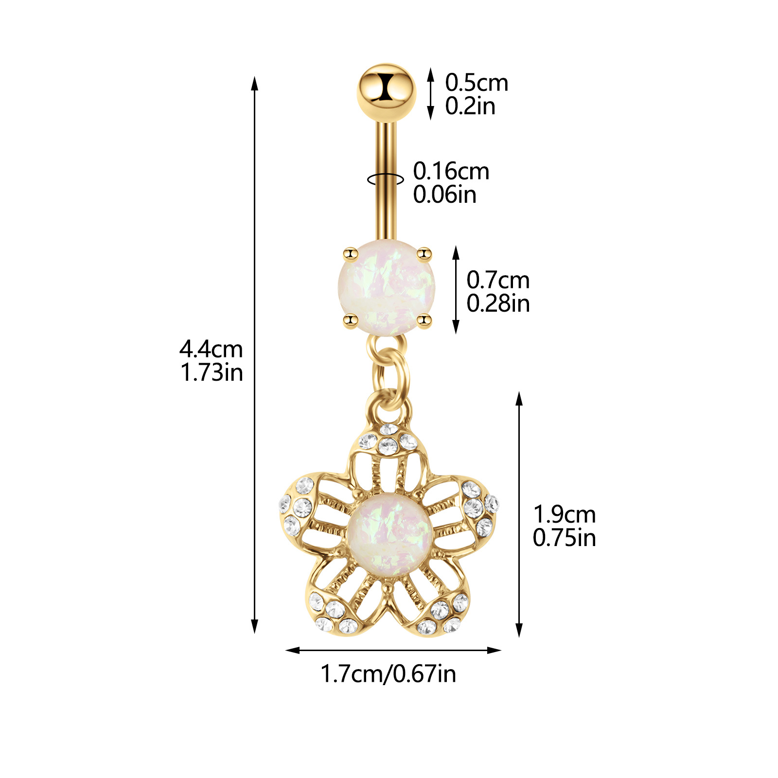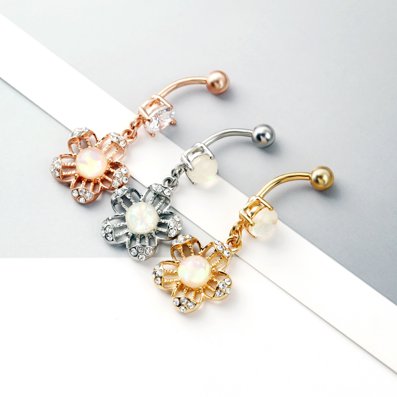 Cruach dhosmálta Ring Belly, 304 Cruach dhosmálta, le Opal & Tíotáiniam Alloy, Flower, plátáilte, jewelry faisin & le rhinestone, dathanna níos mó le haghaidh rogha, Díolta De réir PC