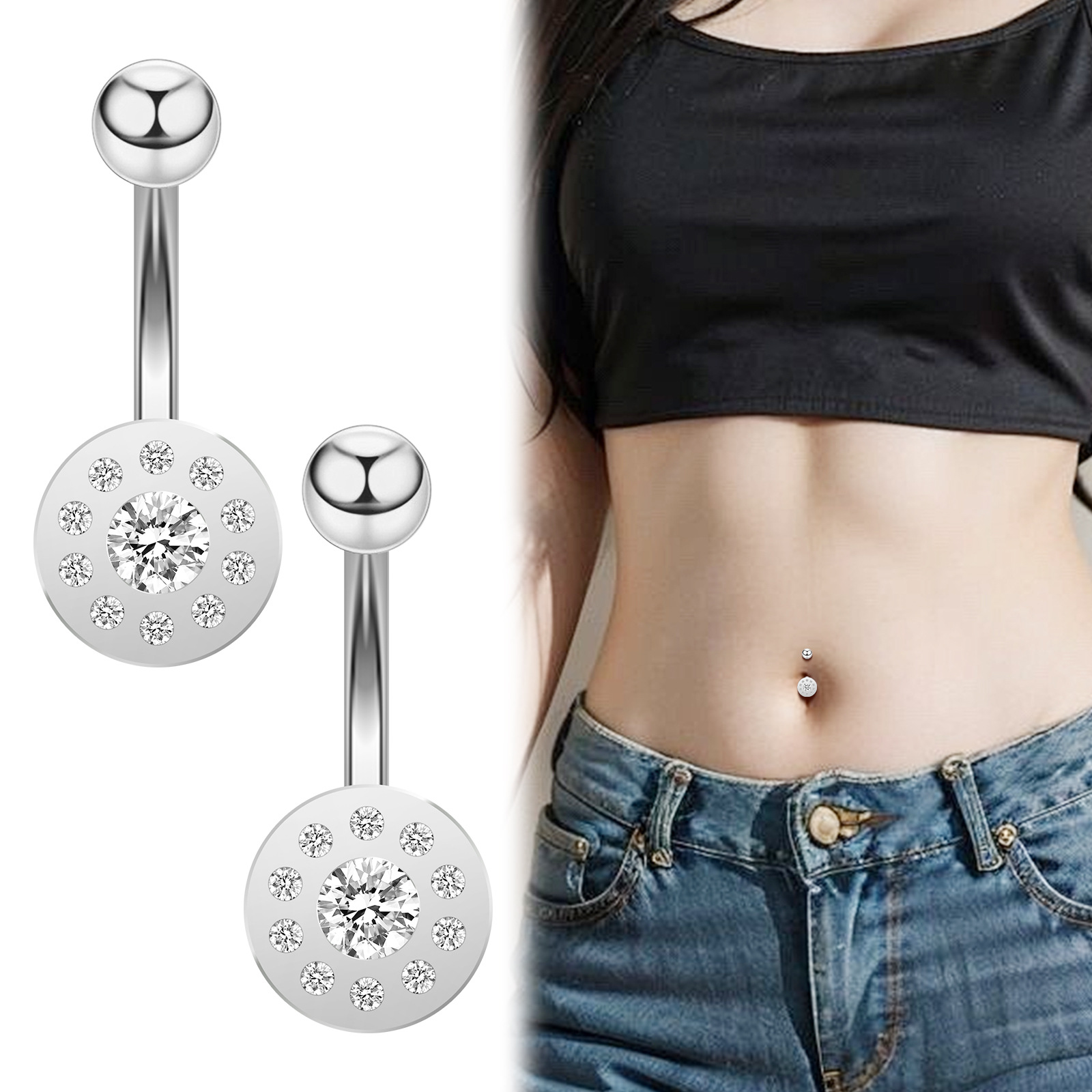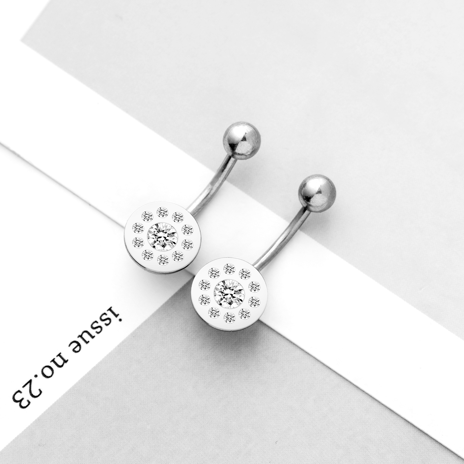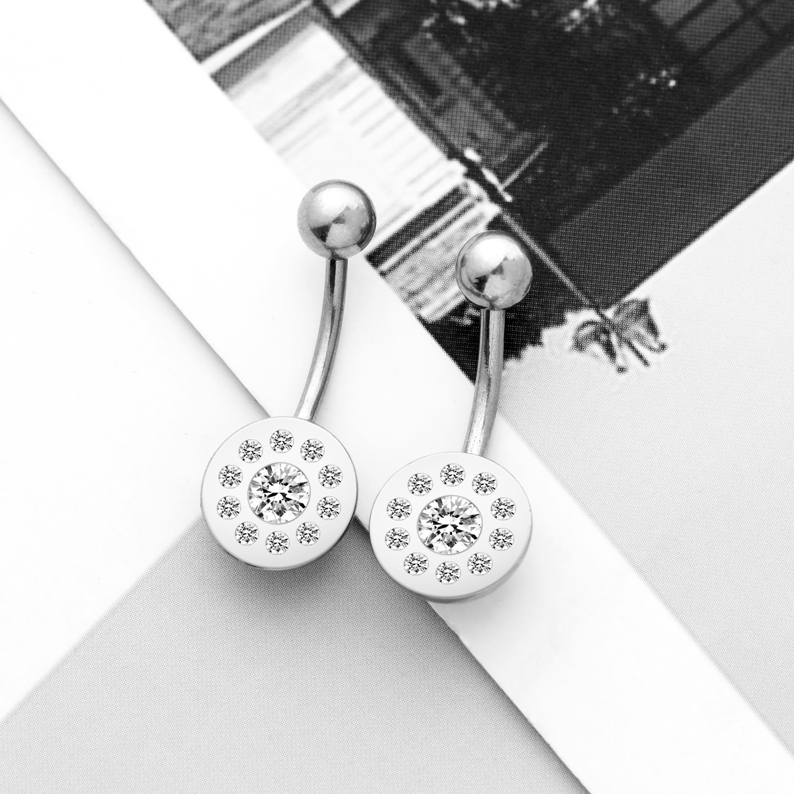 Cruach dhosmálta Ring Belly, 304 Cruach dhosmálta, le Alloy, dath airgid plated, jewelry faisin & le rhinestone, airgid, Díolta De réir PC