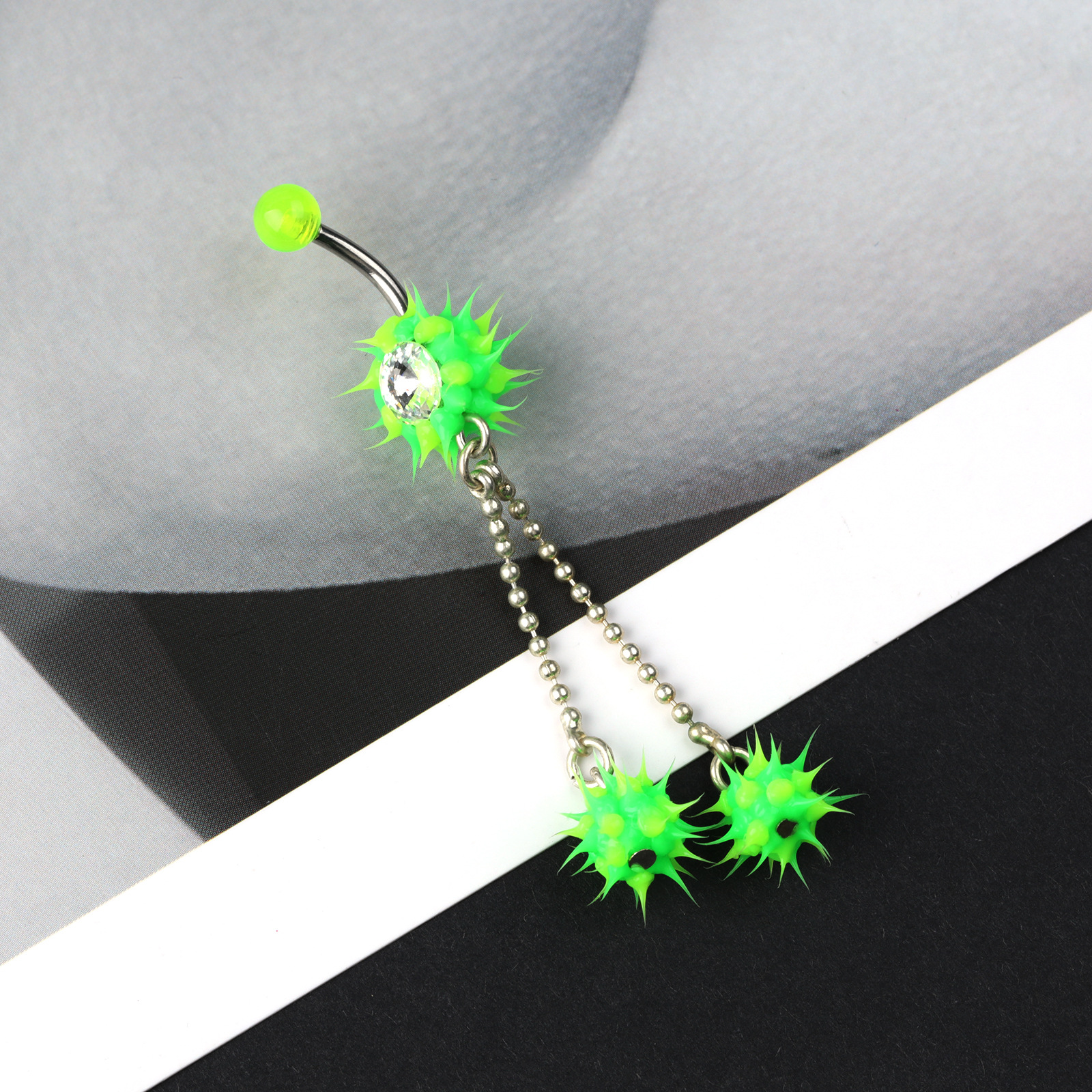 Cruach dhosmálta Ring Belly, 304 Cruach dhosmálta, plátáilte, jewelry faisin & le rhinestone, dathanna measctha, Díolta De réir PC