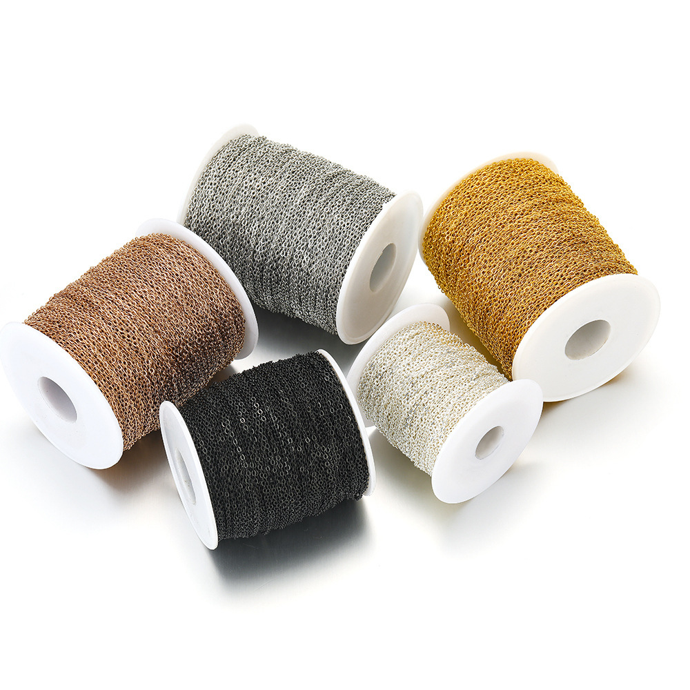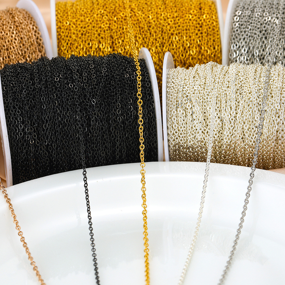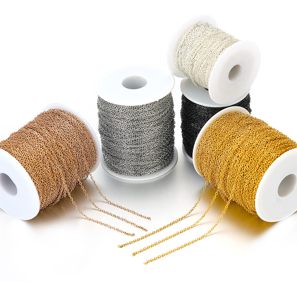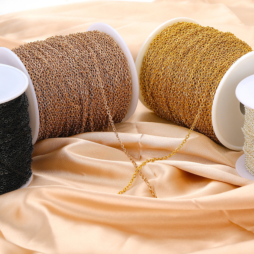 Cruach dhosmálta Slabhra Oval, 304 Cruach dhosmálta, dath an óir plated, DIY, dathanna níos mó le haghaidh rogha, 2m/Mála, Díolta De réir Mála
