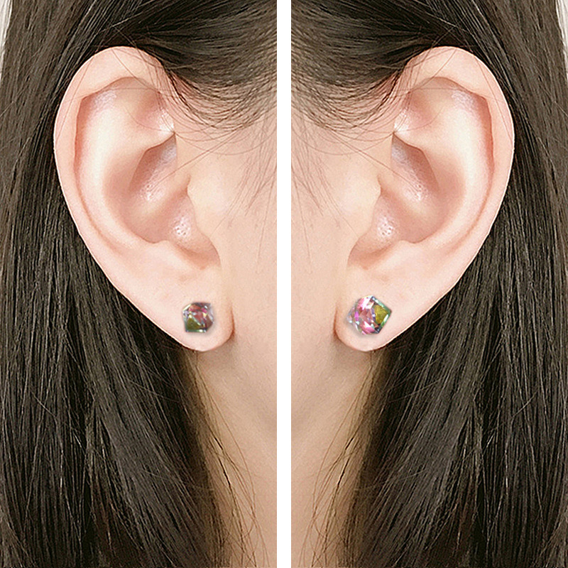 Crystal hOstaire Graí Earring, le 925 Sterling Silver, Cearnóg, unisex & méid éagsúla do rogha, dathanna níos mó le haghaidh rogha, Díolta De réir Péire