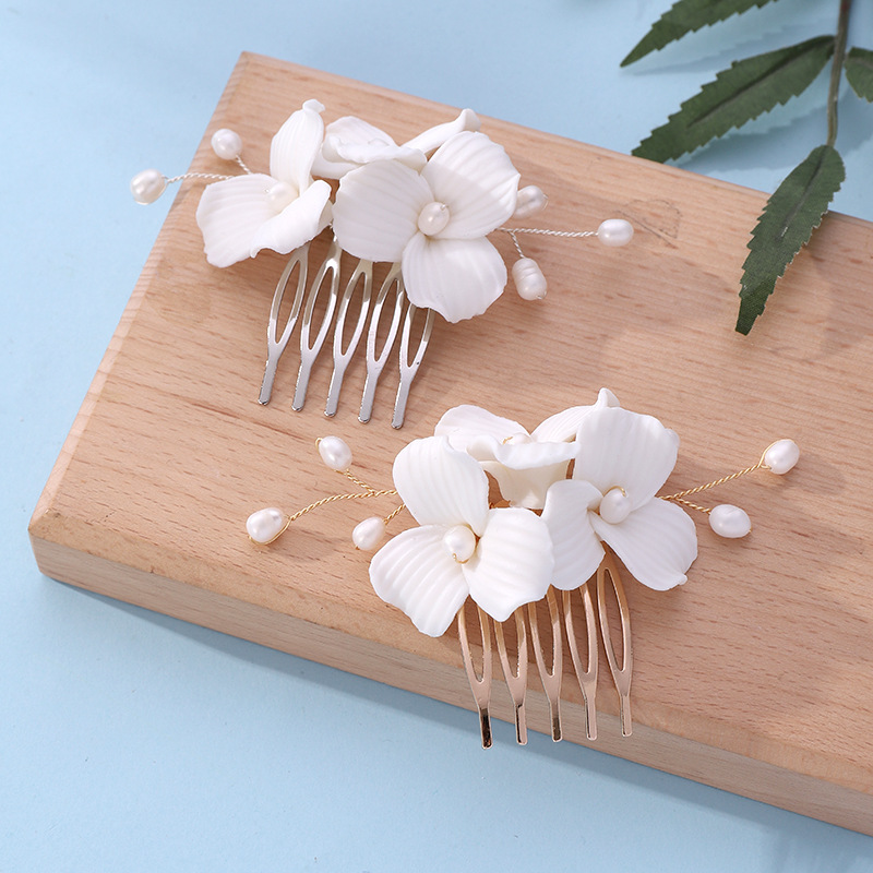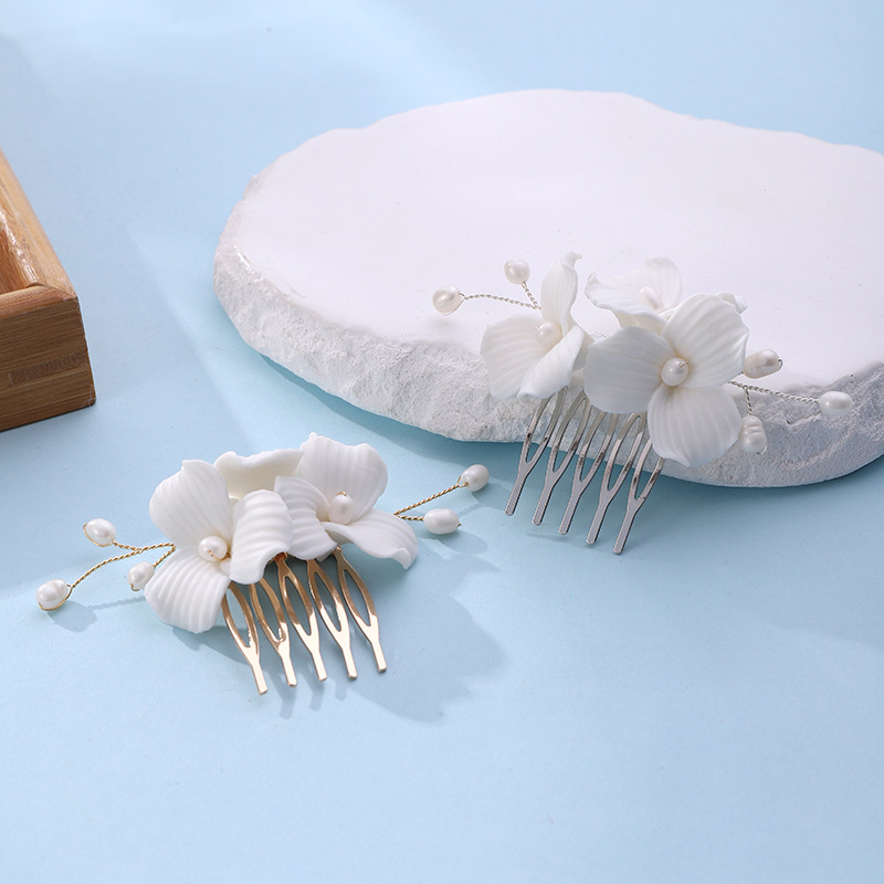 Bridal Maisiúil Gruaige Cíor, Sinc Alloy, le sreang práis & Polymer Clay & Pearl Plaisteacha, lámhdhéanta, jewelry faisin & do bhean, dathanna níos mó le haghaidh rogha, Díolta De réir PC