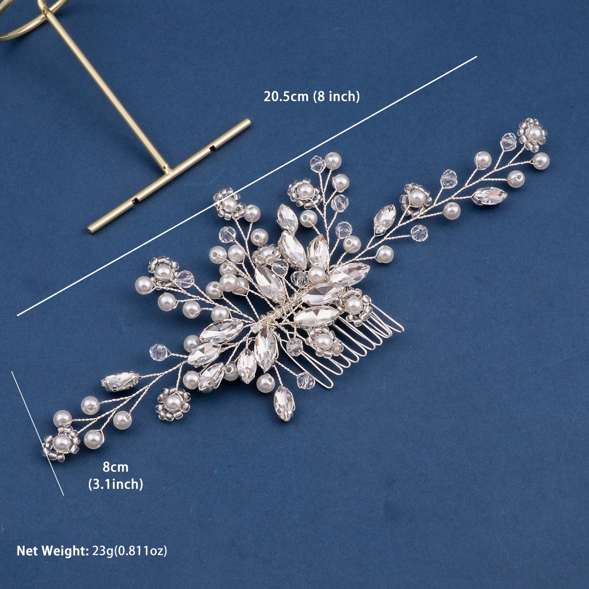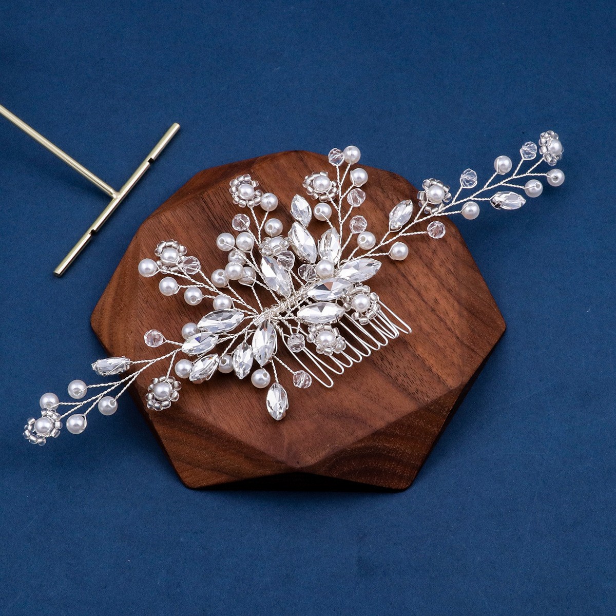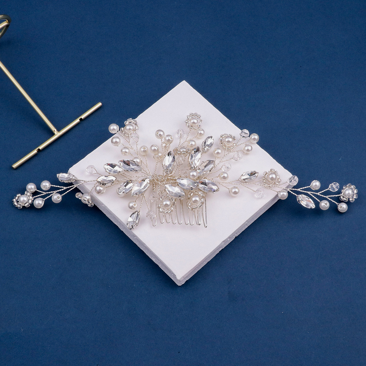 Bridal Maisiúil Gruaige Cíor, Sinc Alloy, le Seedbead & sreang práis & Crystal & Pearl Plaisteacha, lámhdhéanta, jewelry faisin & do bhean, airgid, Díolta De réir PC