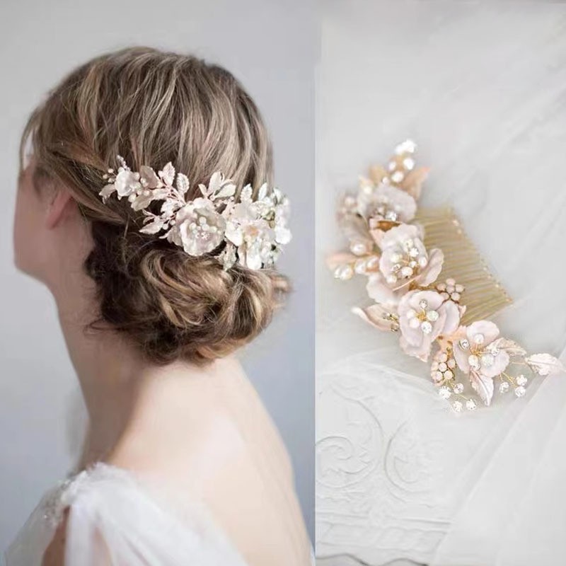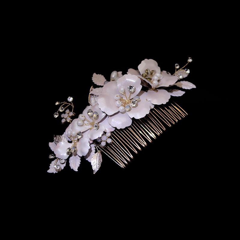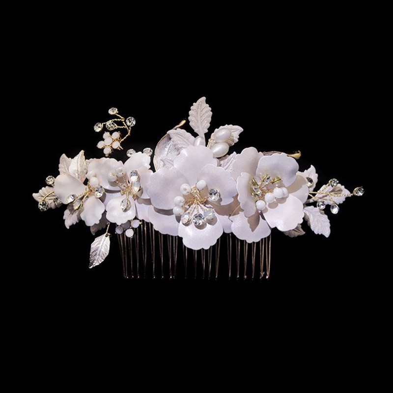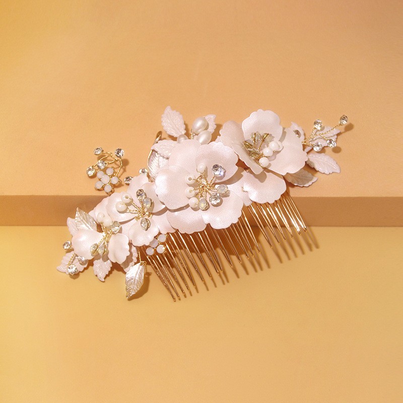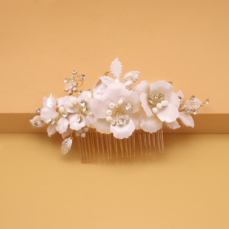 Bridal Maisiúil Gruaige Cíor, Sinc Alloy, le Seedbead & sreang práis & Polymer Clay & Crystal, plátáilte, jewelry faisin & lámhdhéanta & do bhean, óir, 140x80mm, Díolta De réir PC
