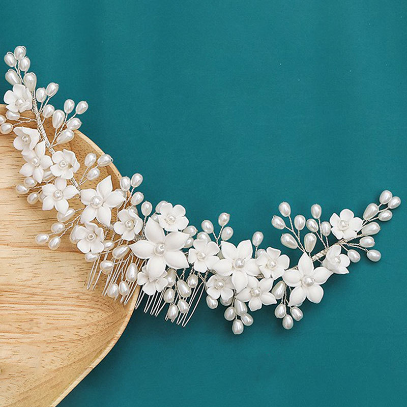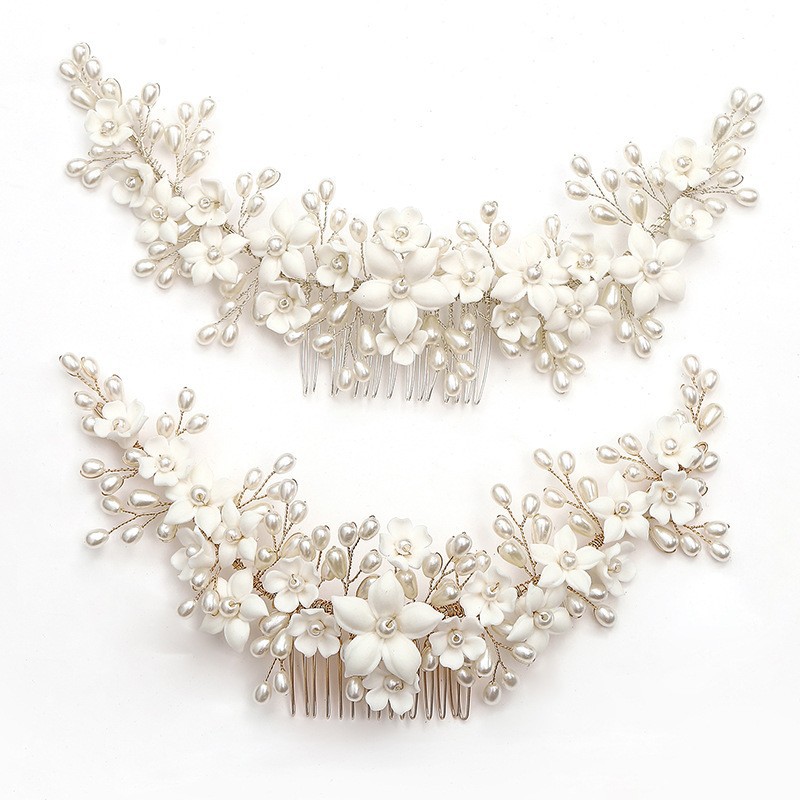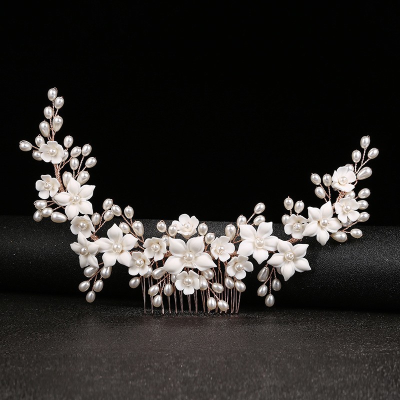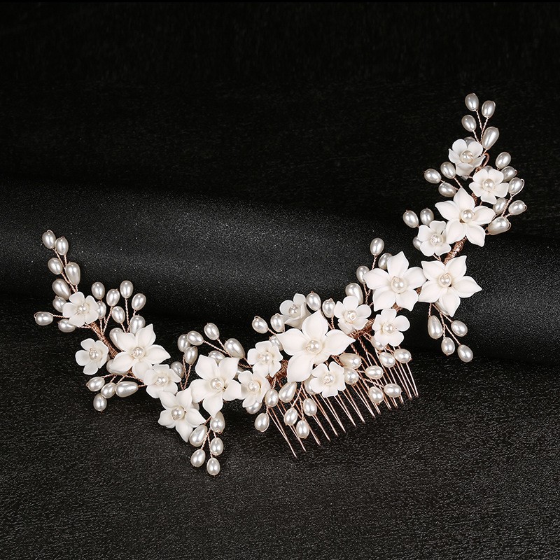 Bridal Maisiúil Gruaige Cíor, Sinc Alloy, le sreang práis & Polymer Clay & Pearl Plaisteacha, lámhdhéanta, jewelry faisin & do bhean, dathanna níos mó le haghaidh rogha, 200x140x10mm, Díolta De réir PC