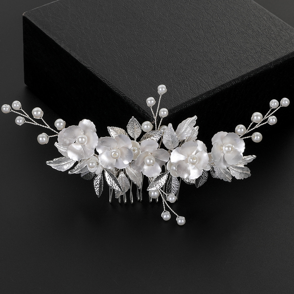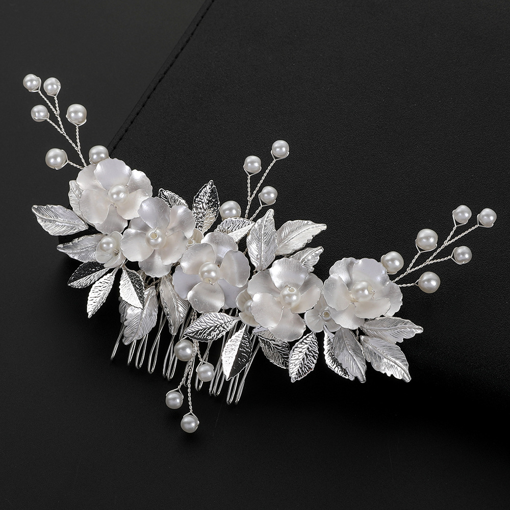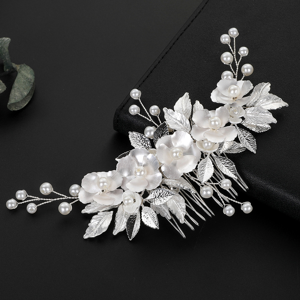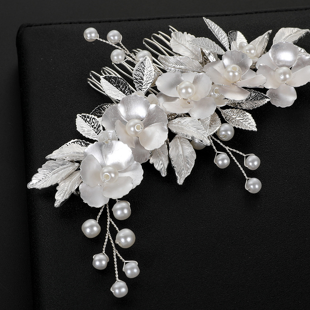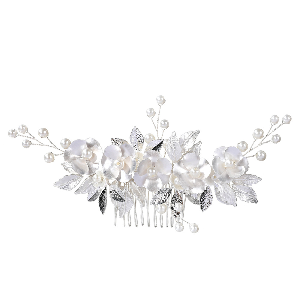 Bridal Maisiúil Gruaige Cíor, Sinc Alloy, le sreang práis & Plaisteach & Pearl Plaisteacha, lámhdhéanta, jewelry faisin & do bhean, airgid, 140x80x5mm, Díolta De réir PC