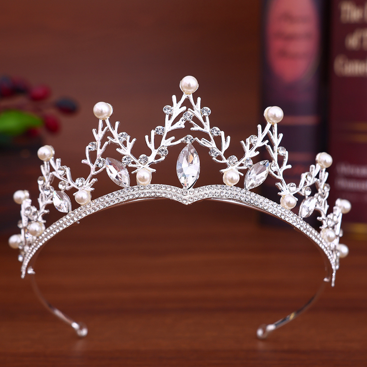 Tiaras, Sinc Alloy, le Pearl Plaisteacha, plátáilte, do bhean & le rhinestone, 55x300mm, Díolta De réir PC