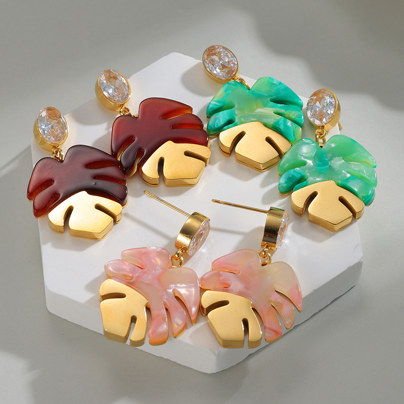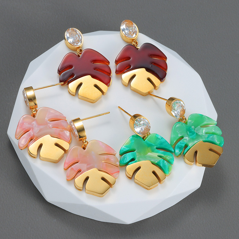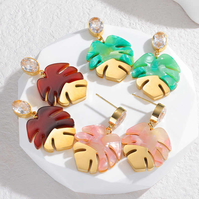 Earring Jewelry Aicrileach, 304 Cruach dhosmálta, le Aicrileach, Leaf, dath an óir plated, jewelry faisin & do bhean & le rhinestone, dathanna níos mó le haghaidh rogha, Díolta De réir Péire