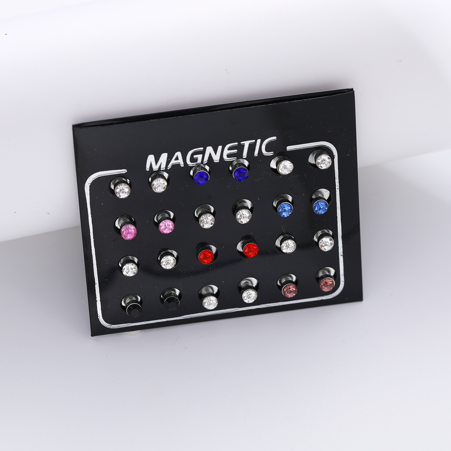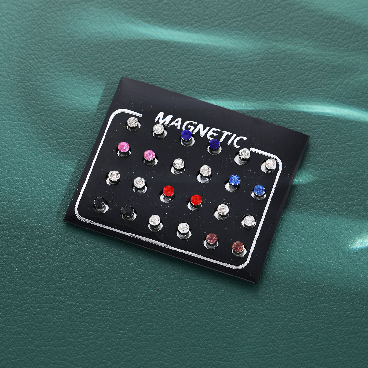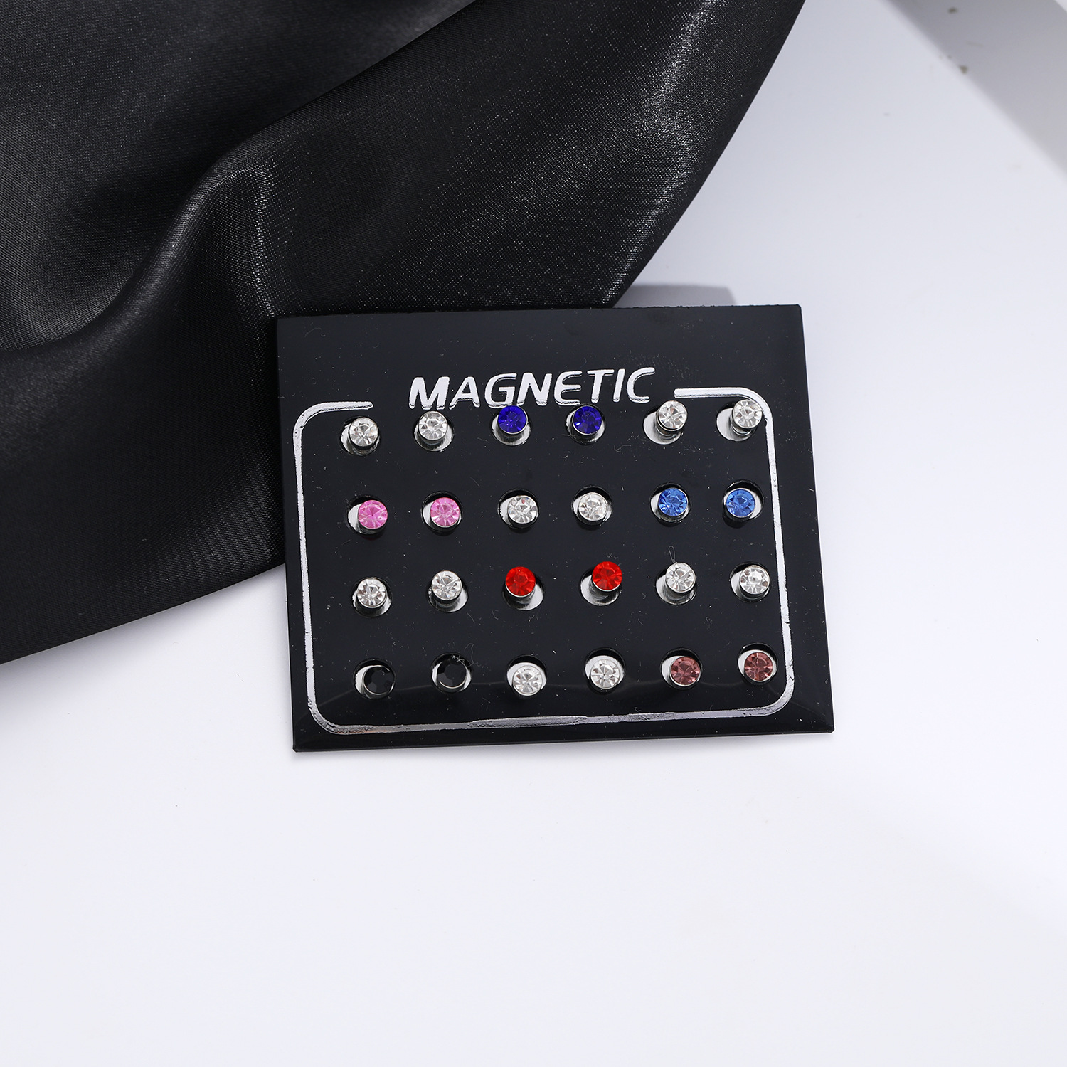 Earring maighnéadach, Sinc Alloy, plátáilte, 12 phíosa & jewelry faisin & le rhinestone, dathanna measctha, Díolta De réir Socraigh