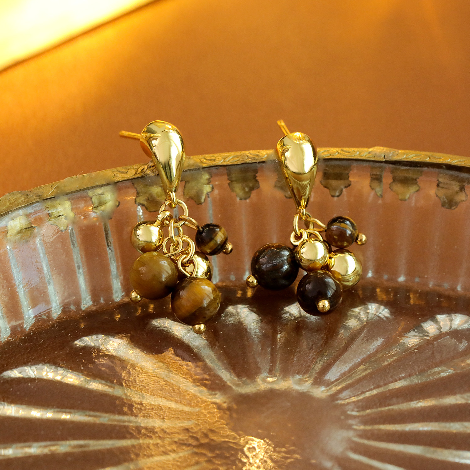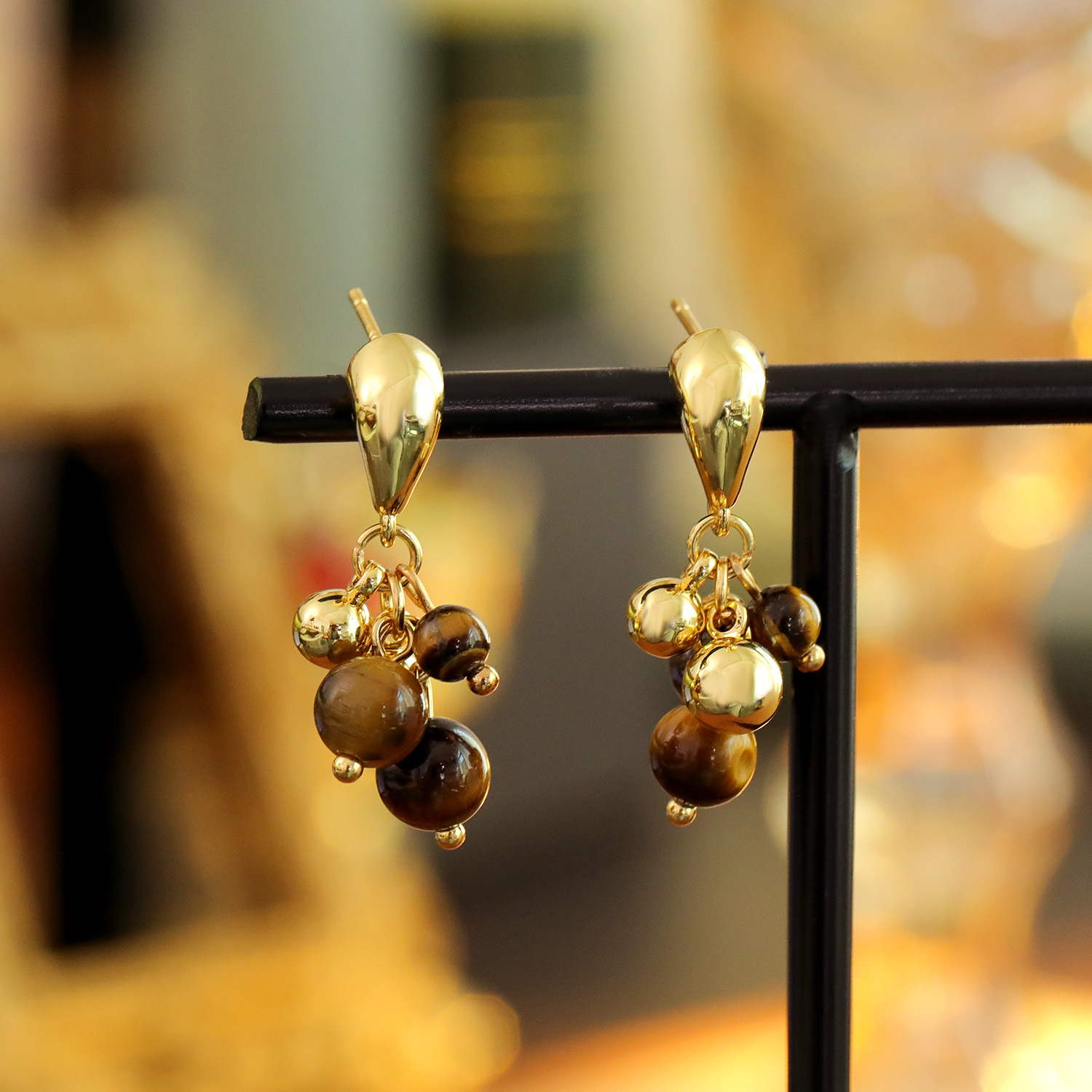 Earrings Gemstone, Prás, le Tíogair Súl, Úrfhíon fíonchaor, 18K ór plátáilte, jewelry faisin & do bhean, 29x5mm, Díolta De réir Péire