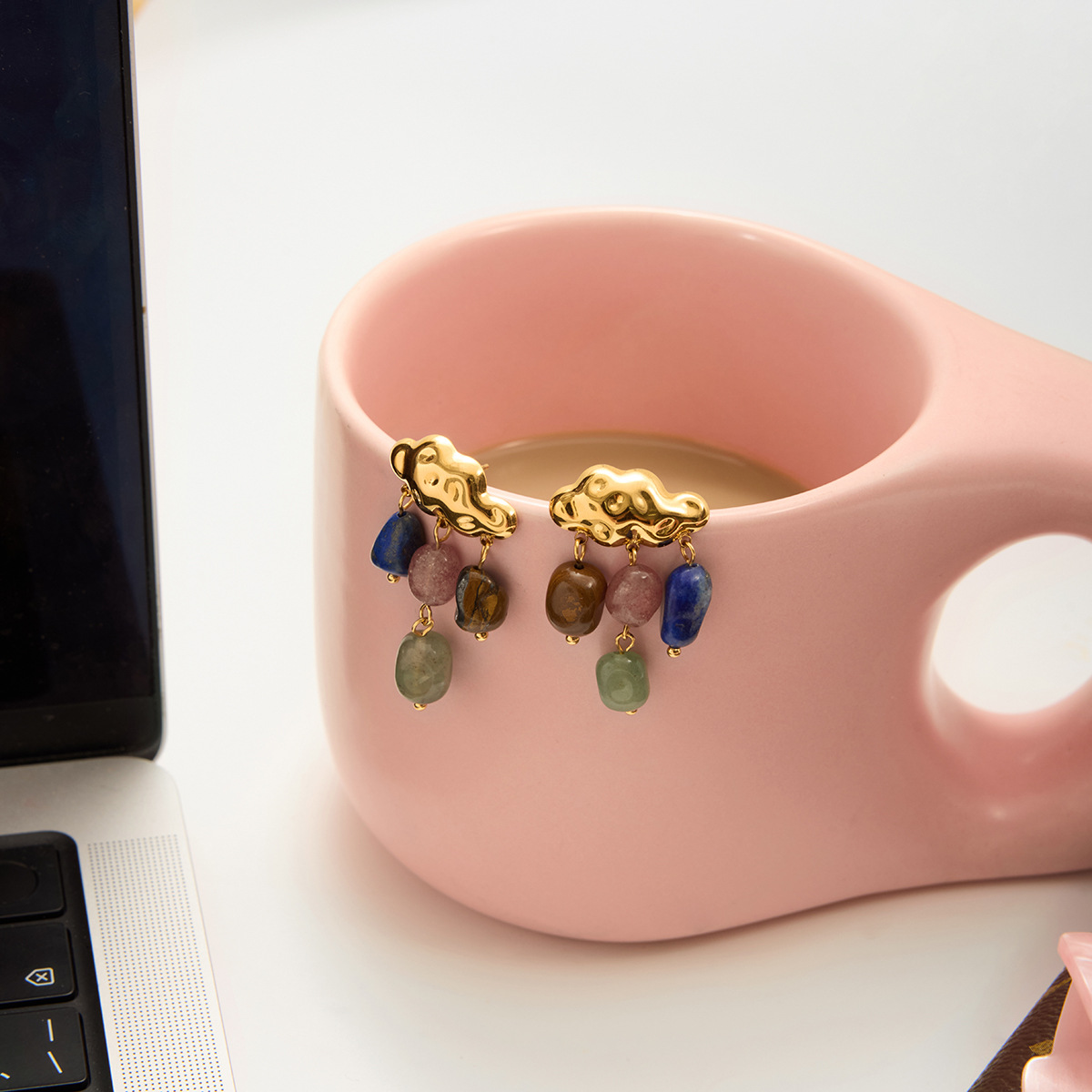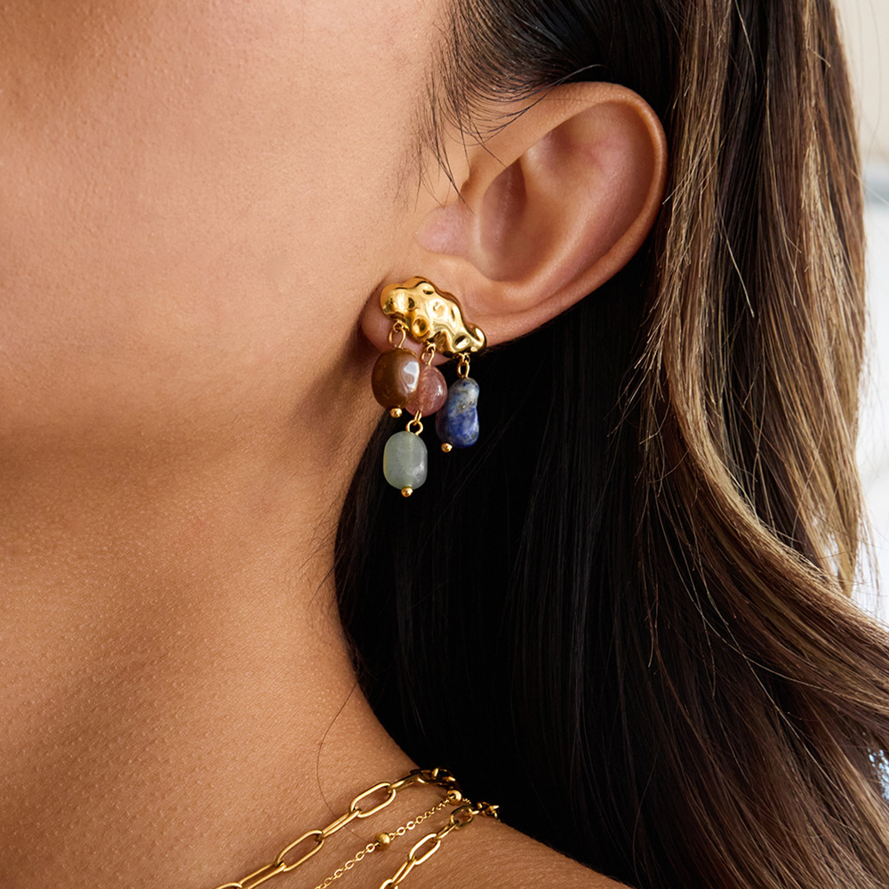 Earrings Gemstone, 304 Cruach dhosmálta, le Cloch Nádúrtha, plátáilte, jewelry faisin & do bhean, órga, Díolta De réir Péire