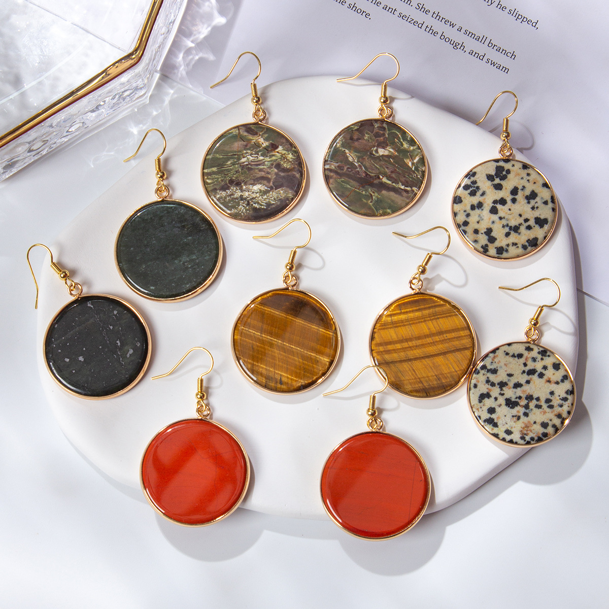 1:Tiger súl2:Bán Turquoise3:Feldspar4:Jasper dearg5:Aventurine Glas6:Dream Snail Stone7:Pictiúr Jasper8:Red Aventurine9:Blue pine10:labradorite11:Unakite12:Amazonite13:Rose Grianchloch14:Seabra Jasper15:Lapis Lazuli16:Black jade17:Dalmatian18:Polar j.