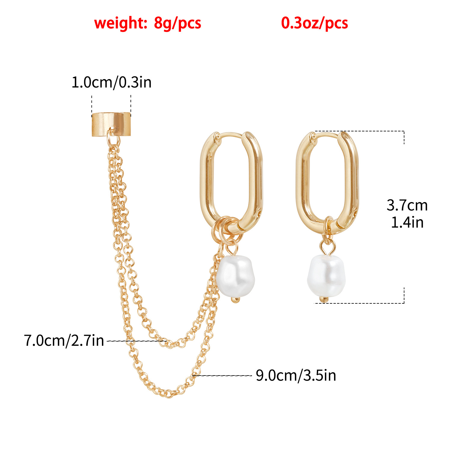 Earrings neamhshiméadrach, Sinc Alloy, le ABS Pearl plaisteach, dath an óir plated, jewelry faisin, órga, Díolta De réir Péire