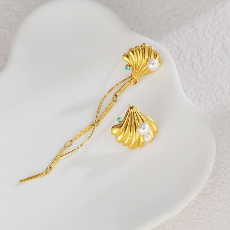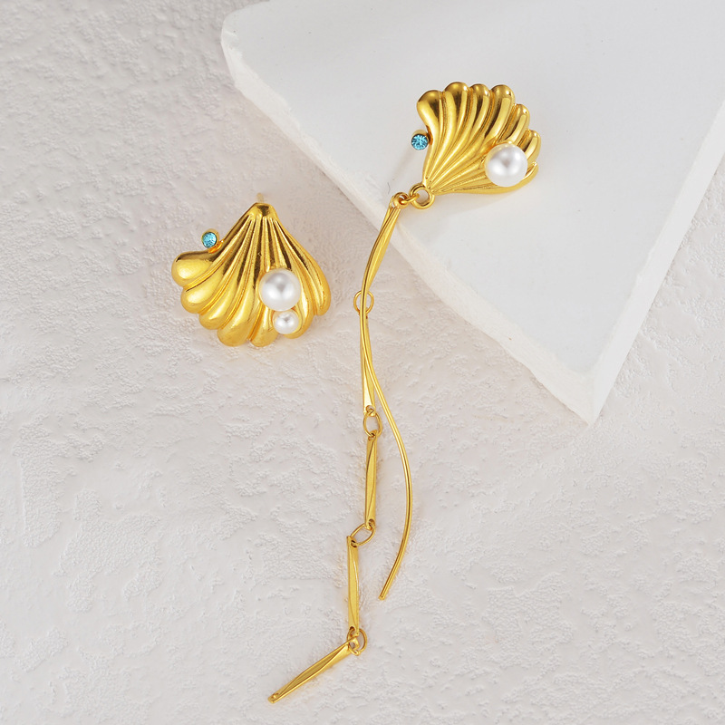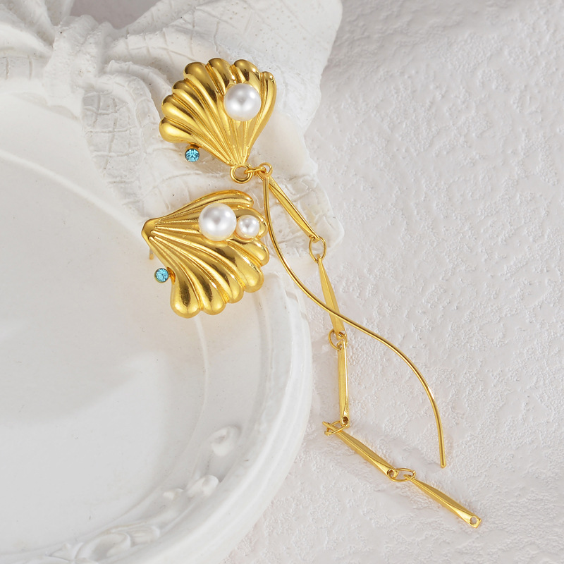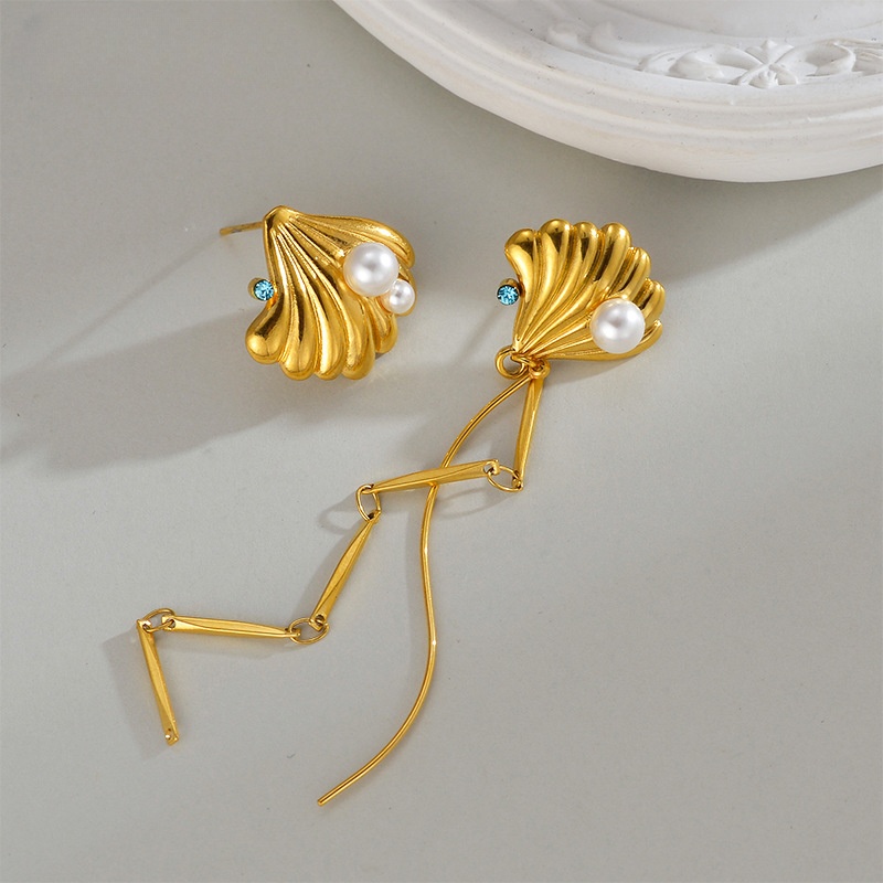 Earrings neamhshiméadrach, 304 Cruach dhosmálta, le Pearl Plaisteacha, Shell, plátáilte, jewelry faisin & do bhean & le rhinestone, órga, Díolta De réir Péire