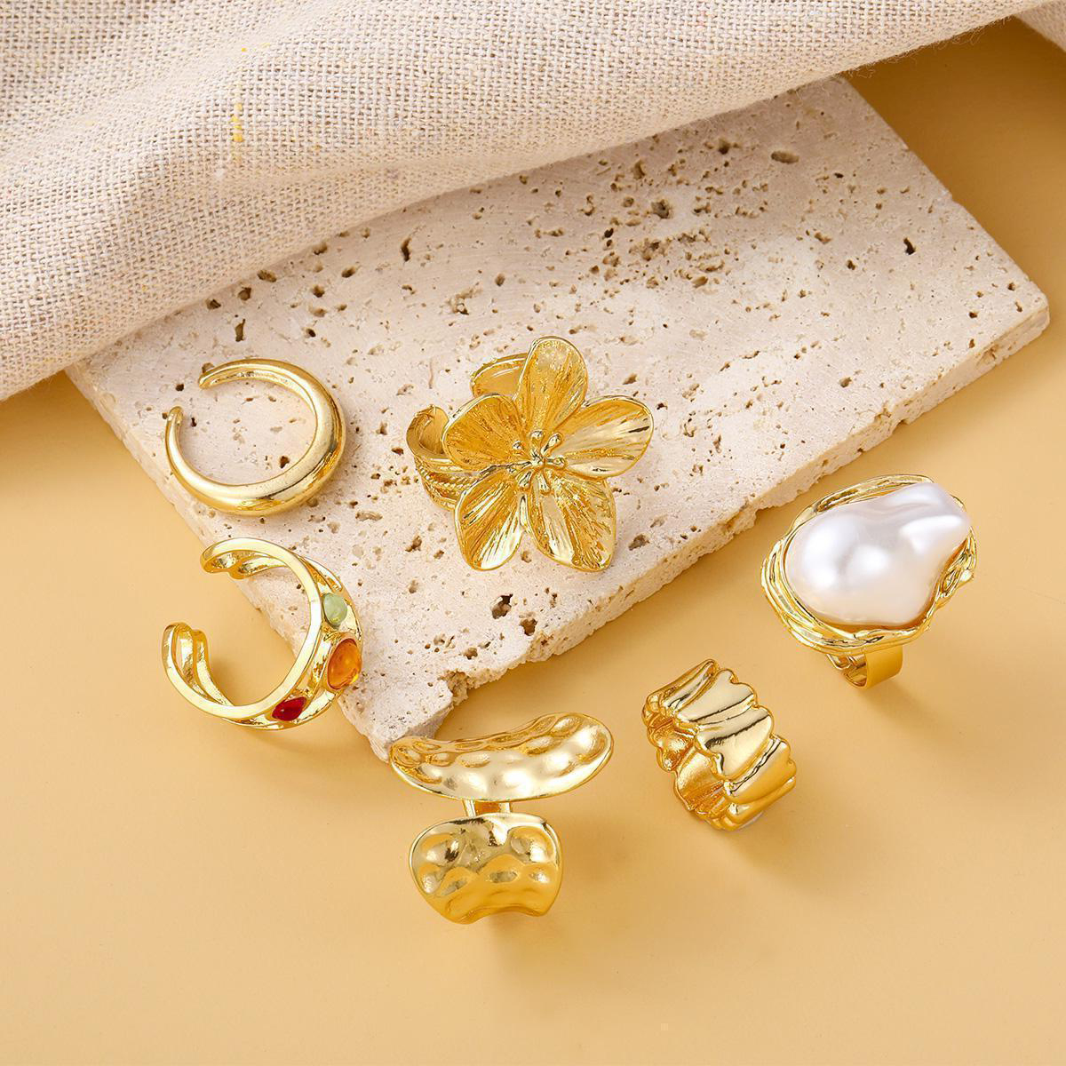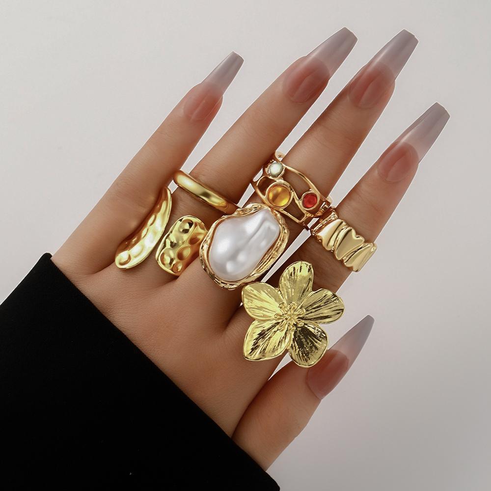 Sinc Alloy Ring Set, le Crystal & Pearl Plaisteacha, plátáilte, 6 phíosa & jewelry faisin & do bhean, órga, Díolta De réir Socraigh