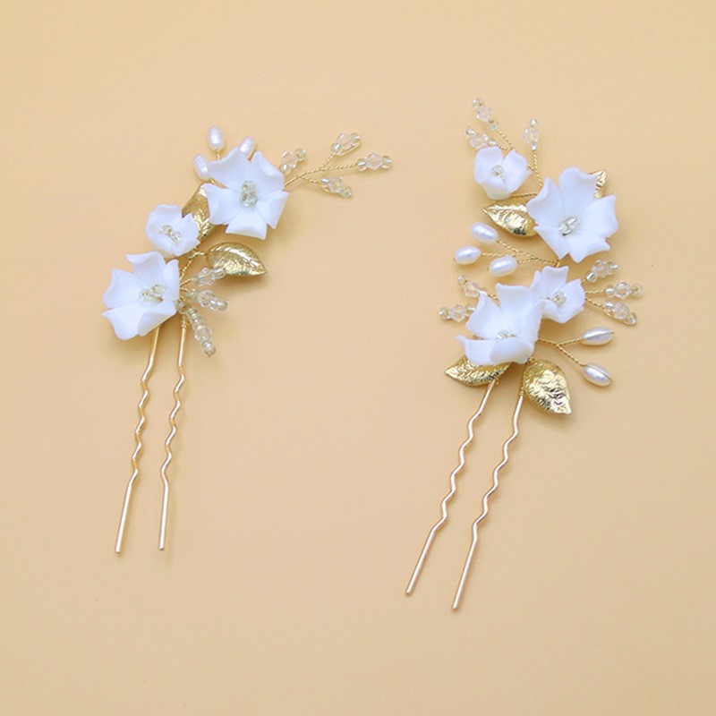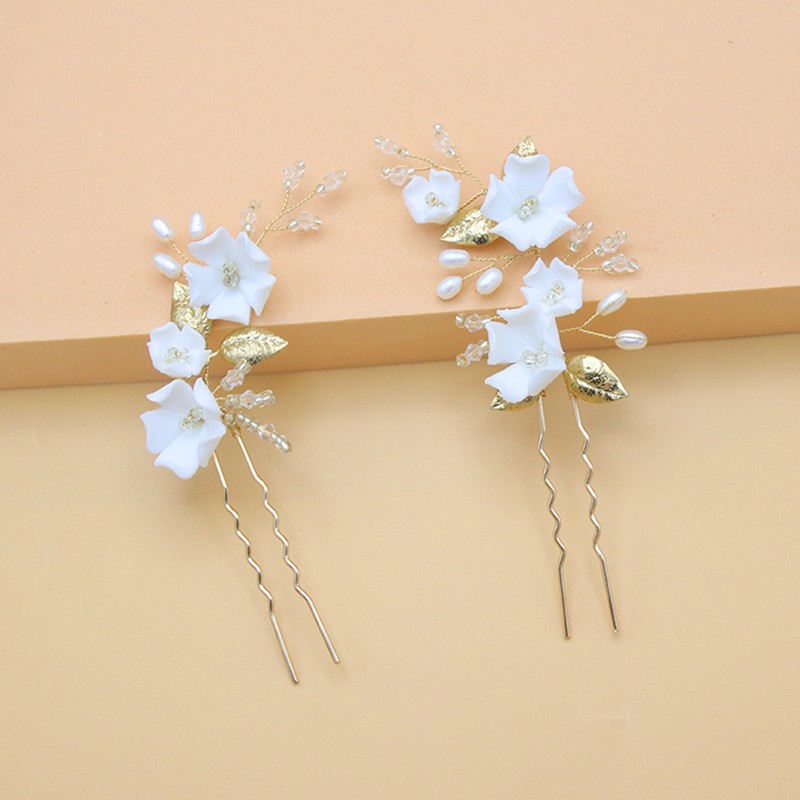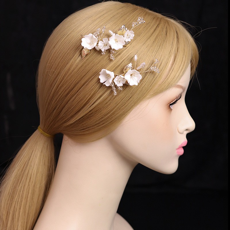 Bridal Gruaige pionnaí, Sinc Alloy, le sreang práis & Polymer Clay & Crystal & Pearl Plaisteacha, plátáilte, 2 phíosa & lámhdhéanta & do bhean, órga, 110x70mm, Díolta De réir Socraigh