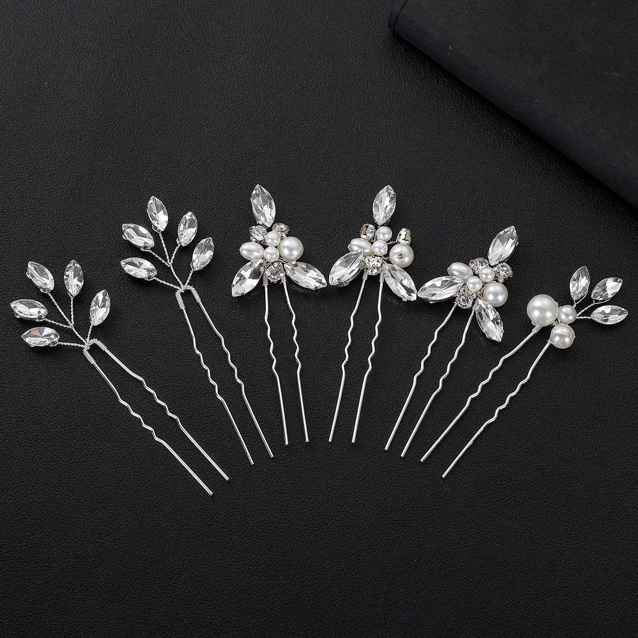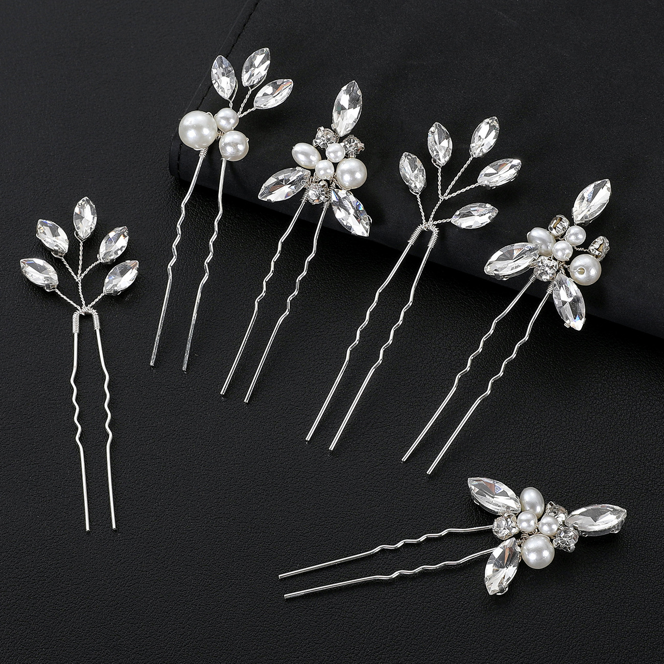 Bridal Gruaige pionnaí, Sinc Alloy, le sreang práis & Crystal & Pearl Plaisteacha, lámhdhéanta, 6 phíosa & jewelry faisin & do bhean, airgid, Díolta De réir Socraigh
