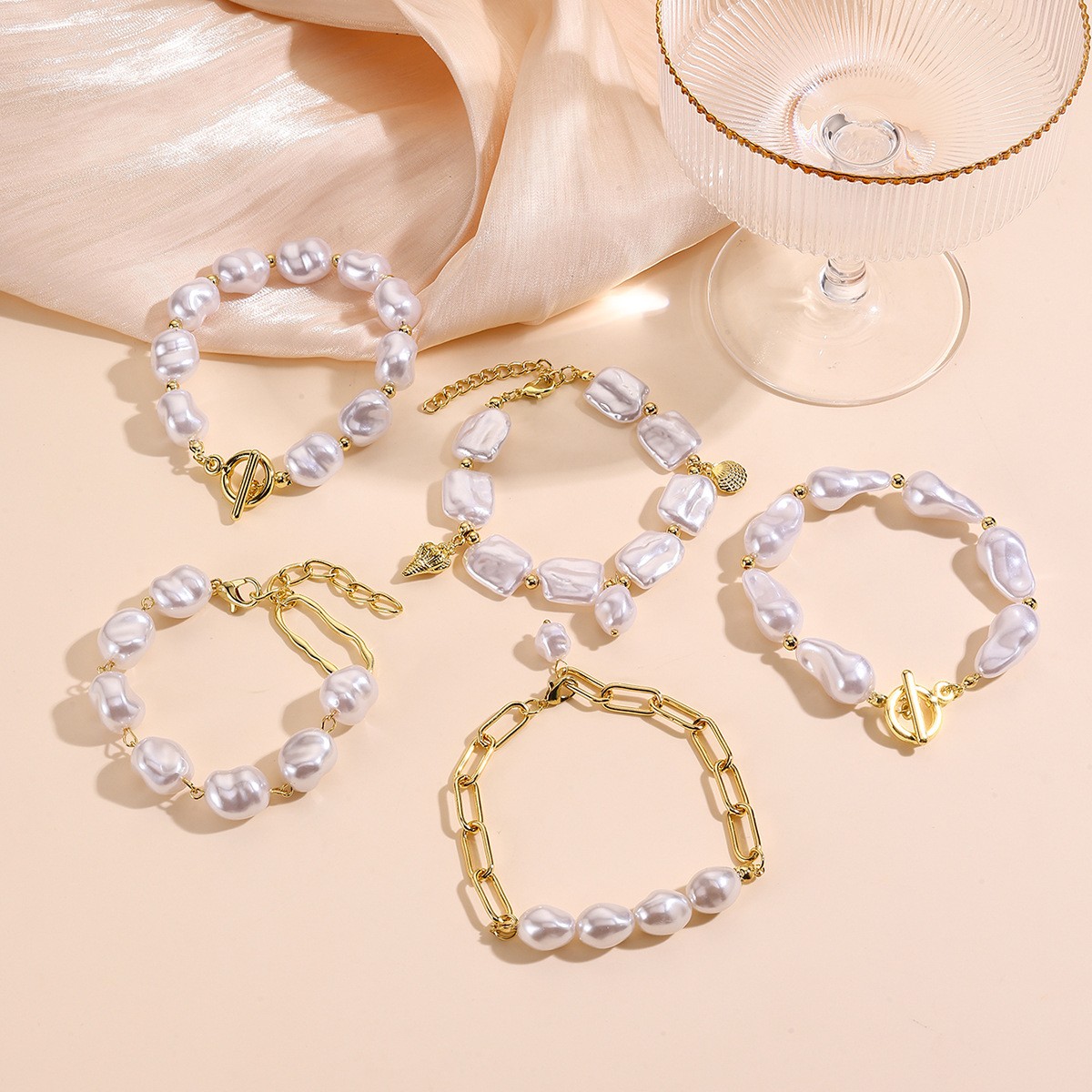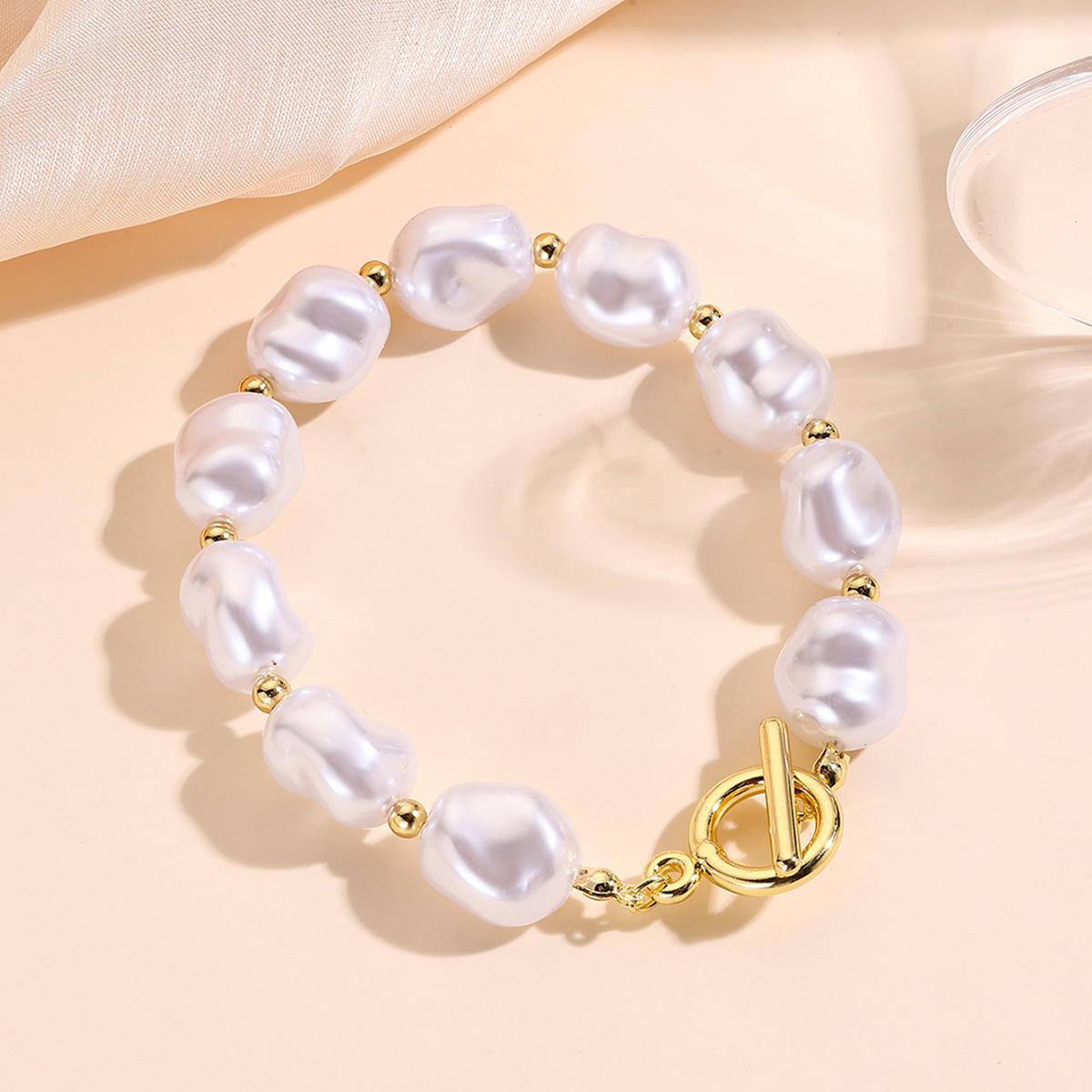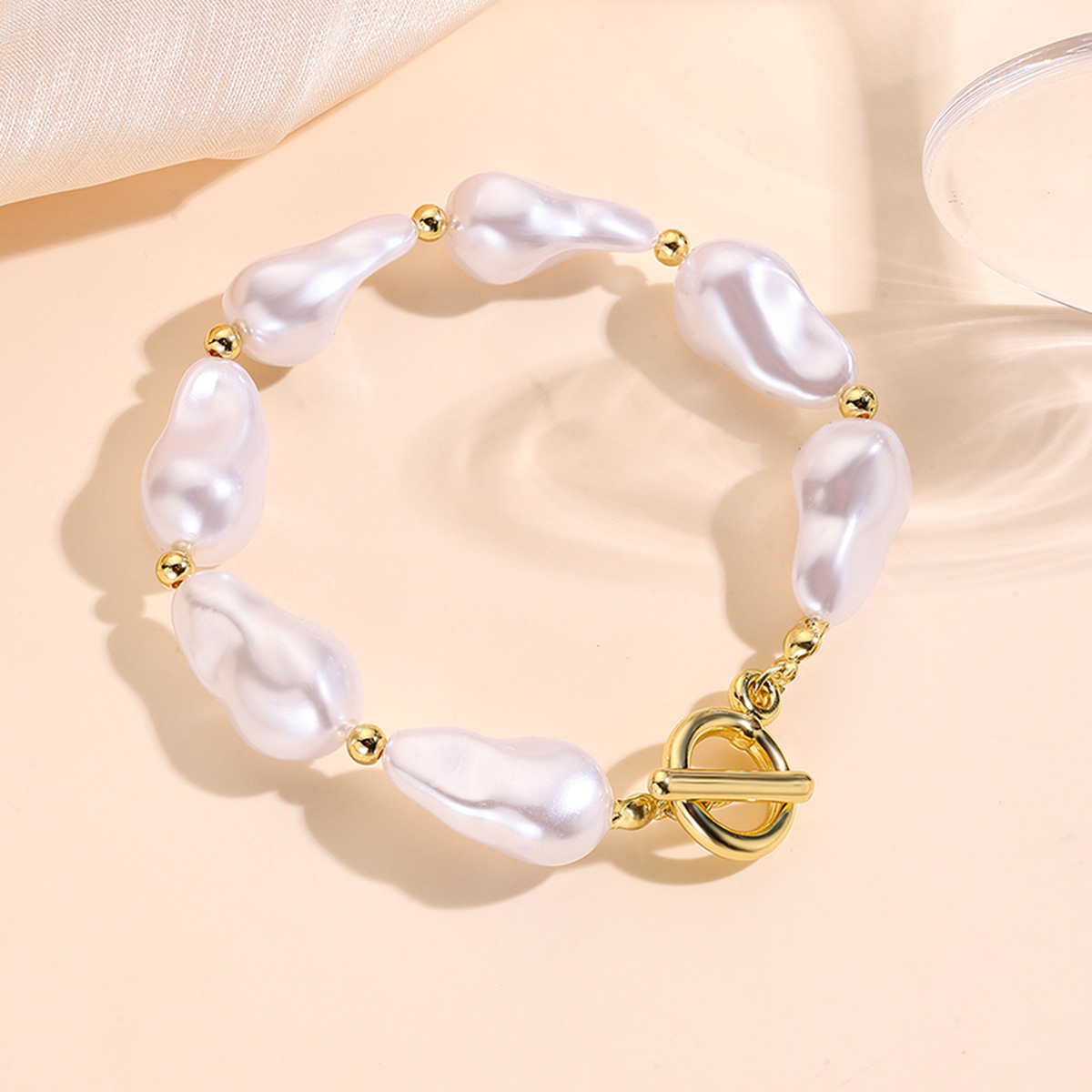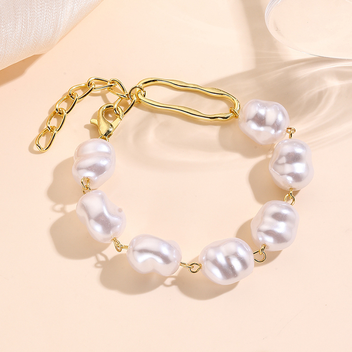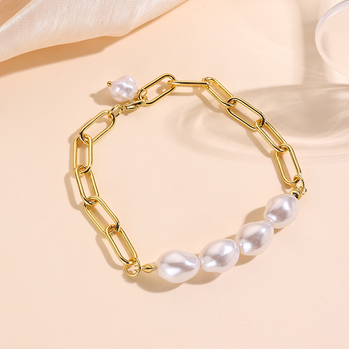 Iarann ​​Bráisléid, Pearl Plaisteacha, le slabhra iarann, dath an óir plated, jewelry faisin & méid éagsúla do rogha & stíleanna éagsúla do rogha & do bhean, Díolta De réir PC