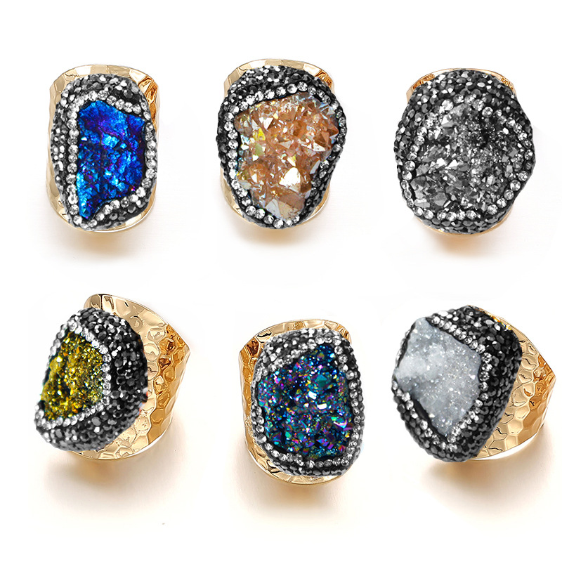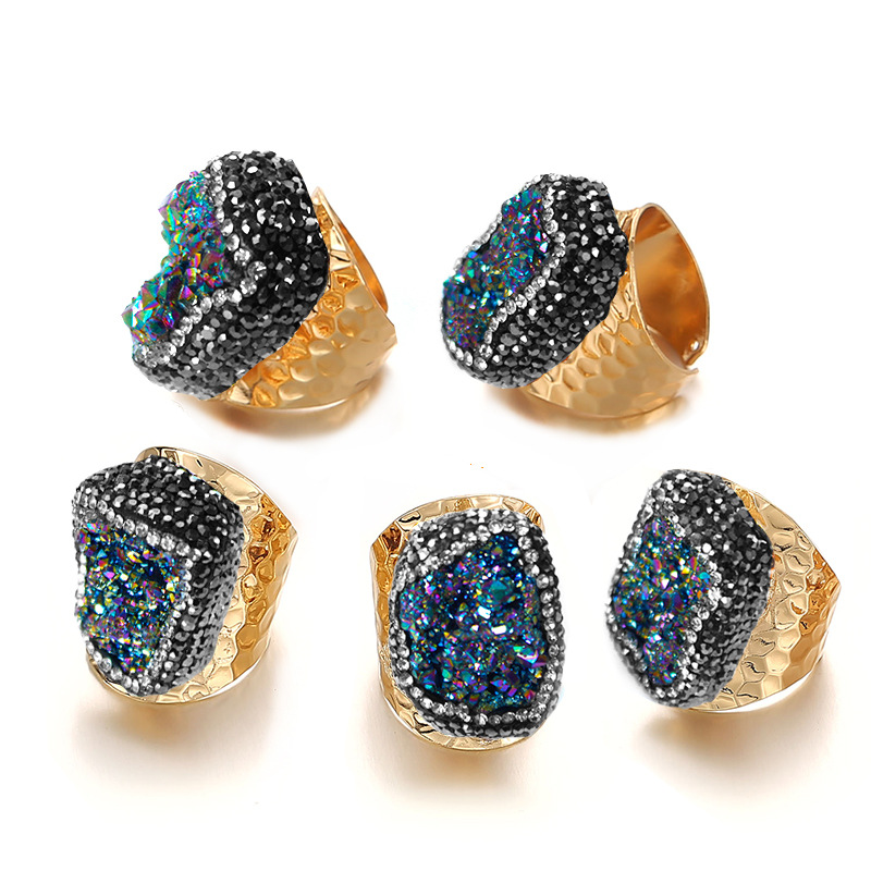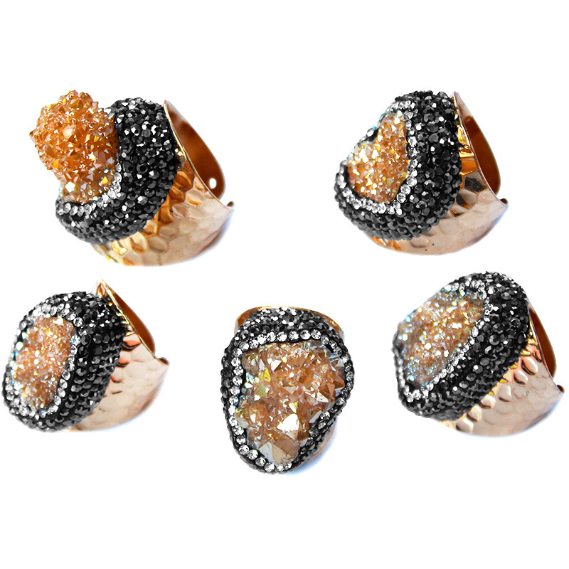 Finger Ring Agate, Prás, le Agate, dath an óir plated, Inchoigeartaithe & do bhean, dathanna níos mó le haghaidh rogha, inner diameter:17~20mm, Díolta De réir PC
