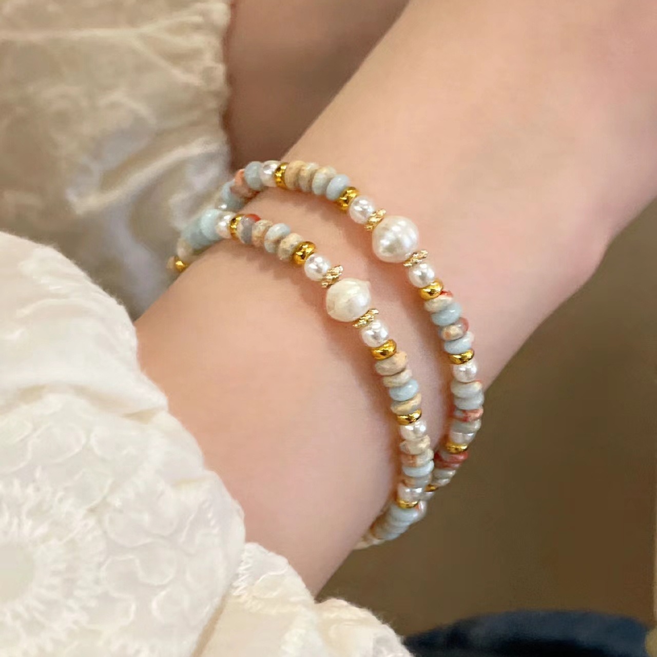 Fionnuisce saothraithe Pearl Bracelet, Pearl Fionnuisce, le Cloch Shoushan & Sinc Alloy, neamhrialta, dath an óir plated, jewelry faisin, dathanna níos mó le haghaidh rogha, 3-8 MM, Díolta Per 17 cm Snáithe