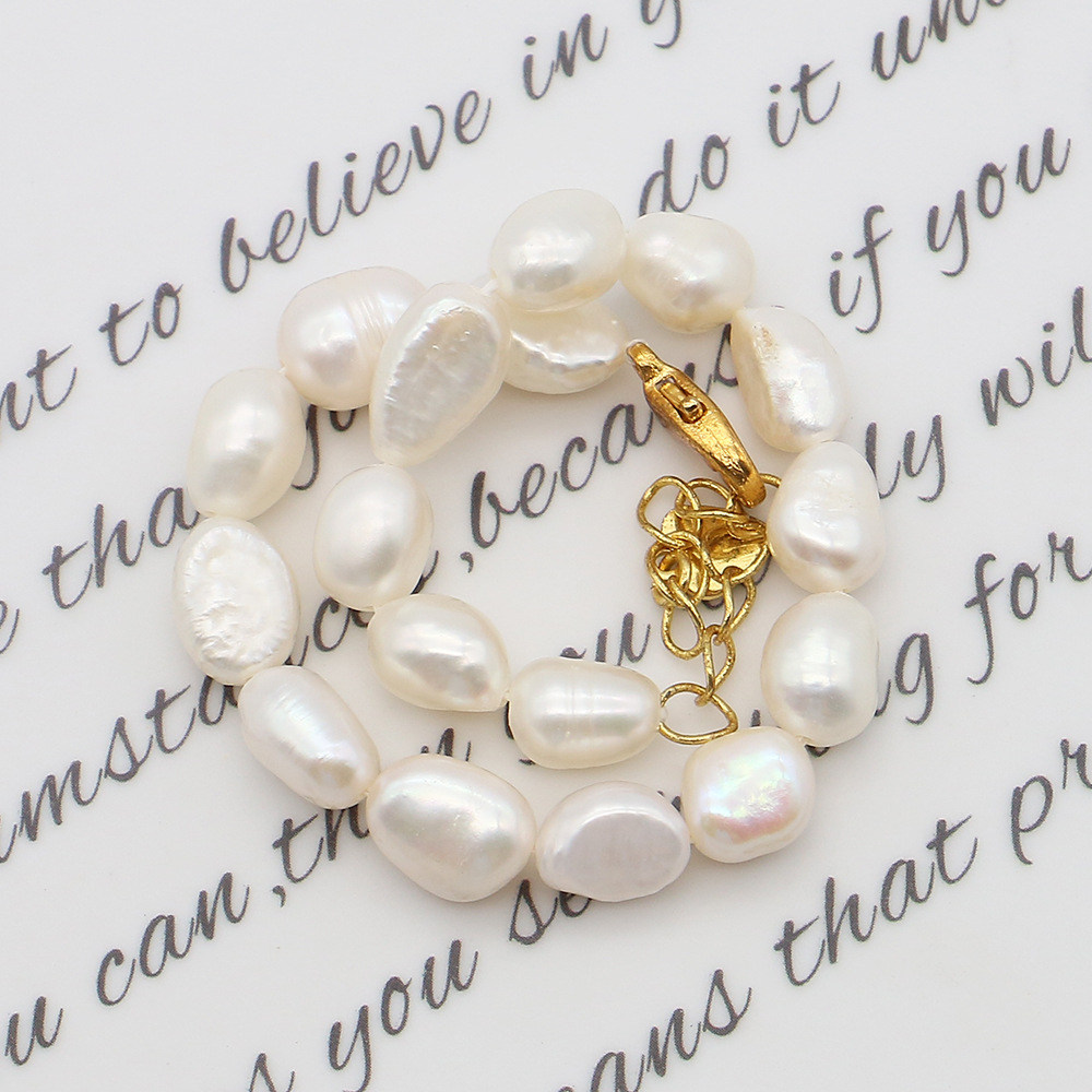 Fionnuisce saothraithe Pearl Bracelet, Pearl Fionnuisce, le Cloch Shoushan & Sinc Alloy, neamhrialta, dath an óir plated, jewelry faisin, dathanna níos mó le haghaidh rogha, 3-8  MM, Díolta Per 17 cm Snáithe
