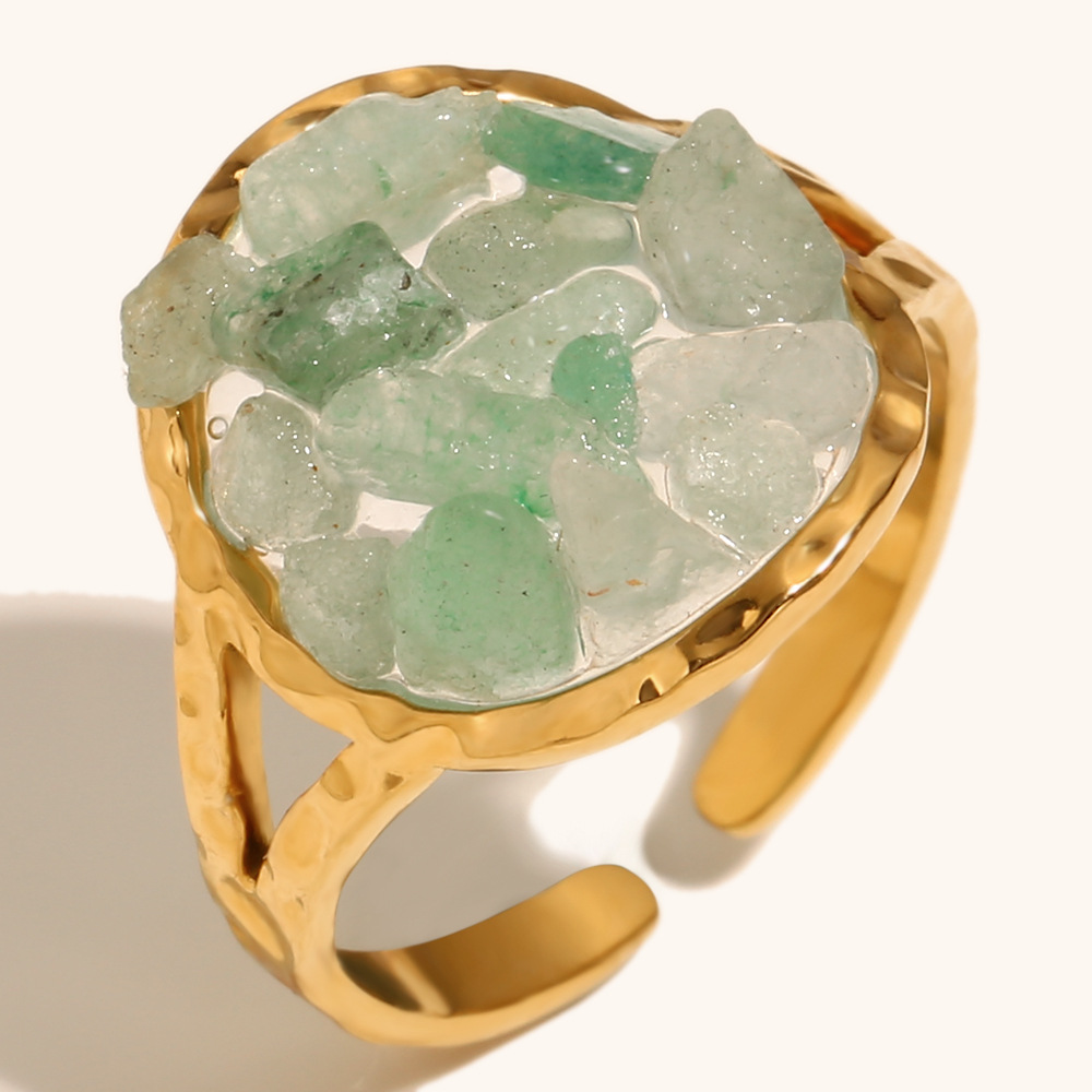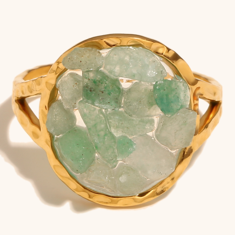 Gemstone Finger Ring, 304 Cruach dhosmálta, le Gemstone, dath an óir plated, do bhean, glas, Díolta De réir PC