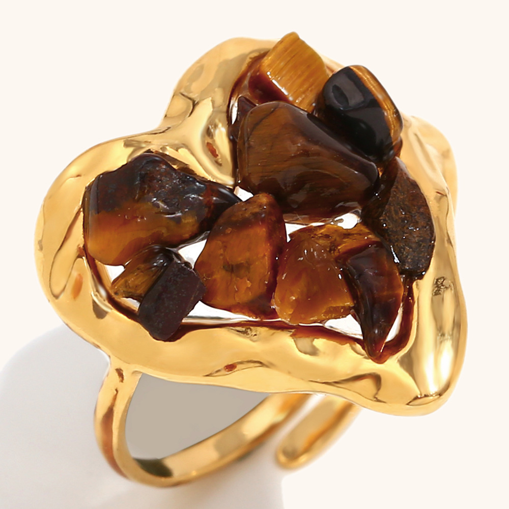 1:Tiger eye gravel adhesive love open ring-gold2:Tianhe gravel bonded love open ring-gold