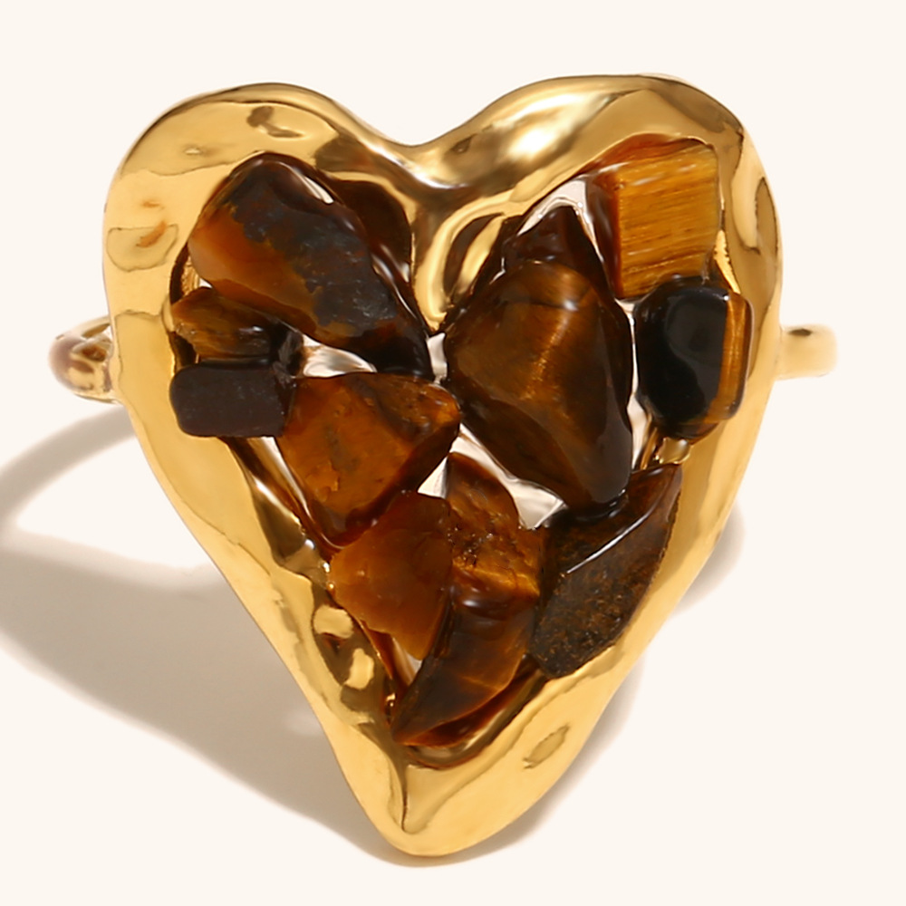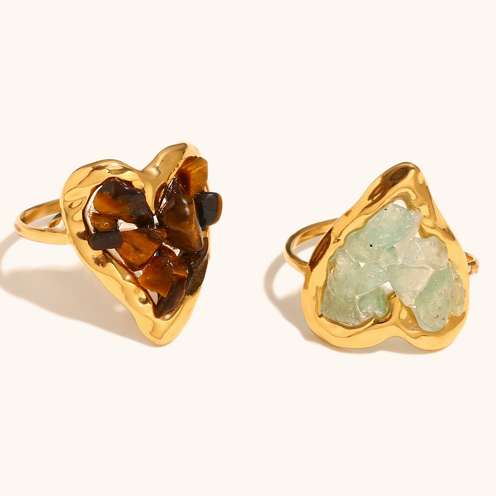 Gemstone Finger Ring, 304 Cruach dhosmálta, le Cloch Nádúrtha, Croí, dath an óir plated, ábhair éagsúla do rogha & do bhean, dathanna níos mó le haghaidh rogha, Díolta De réir PC