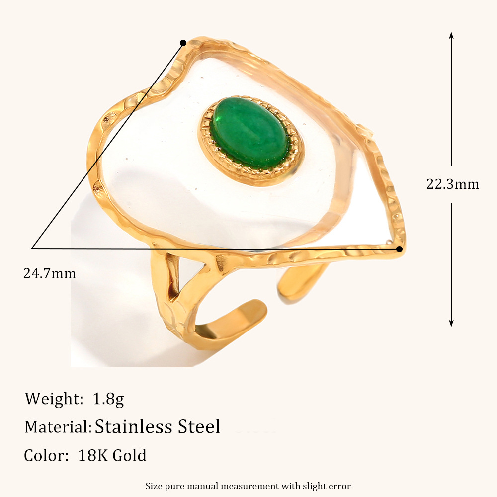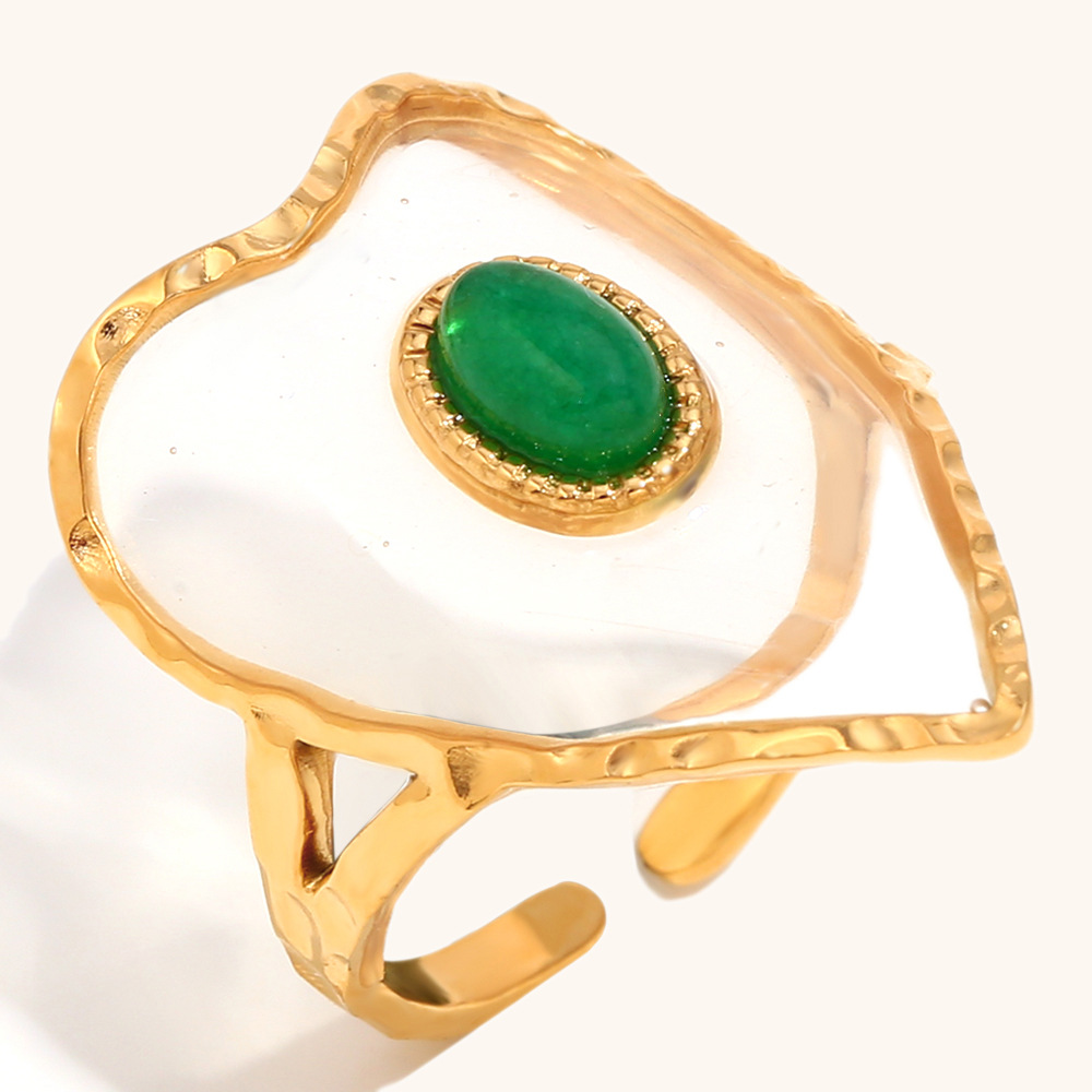 Gemstone Finger Ring, 304 Cruach dhosmálta, le Gemstone & Aicrileach, Croí, dath an óir plated, do bhean, Díolta De réir PC