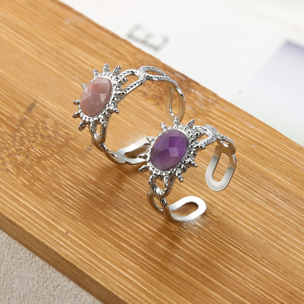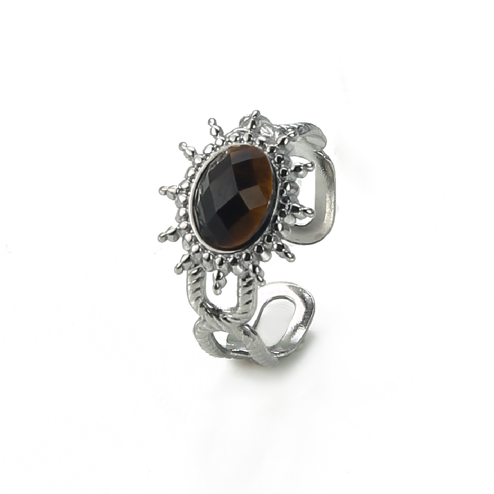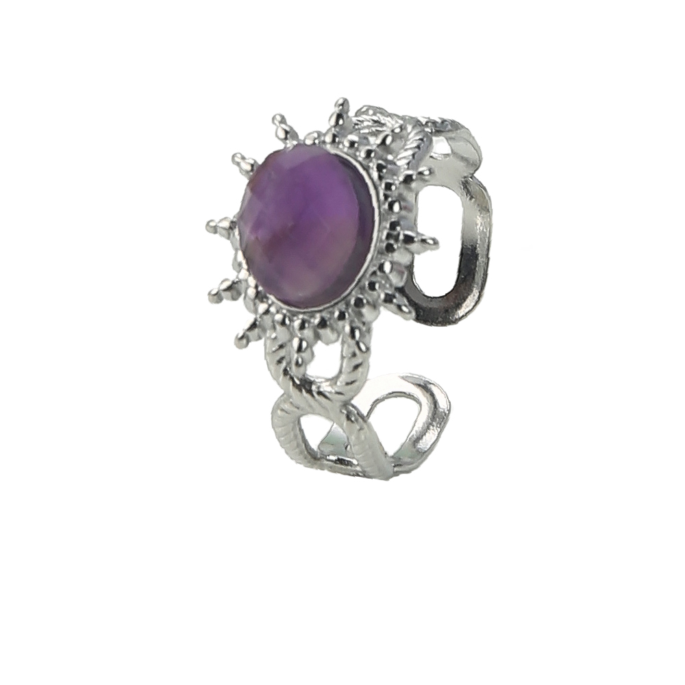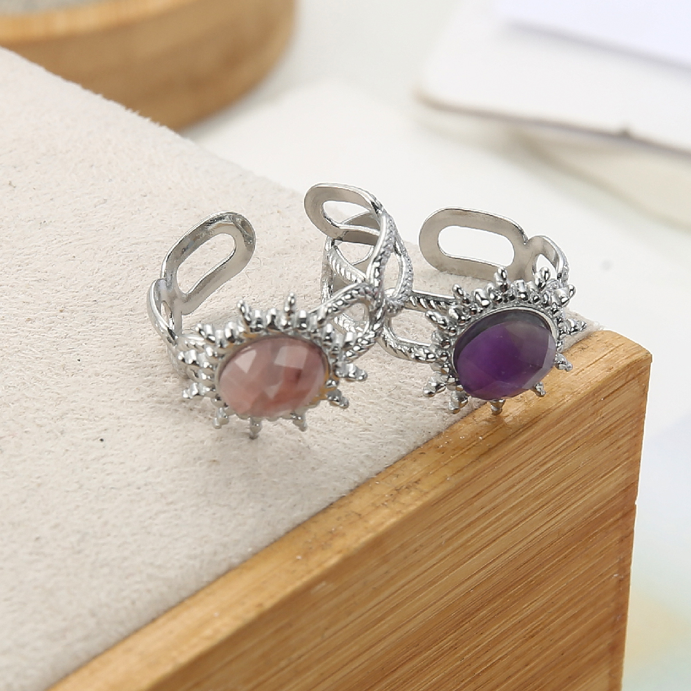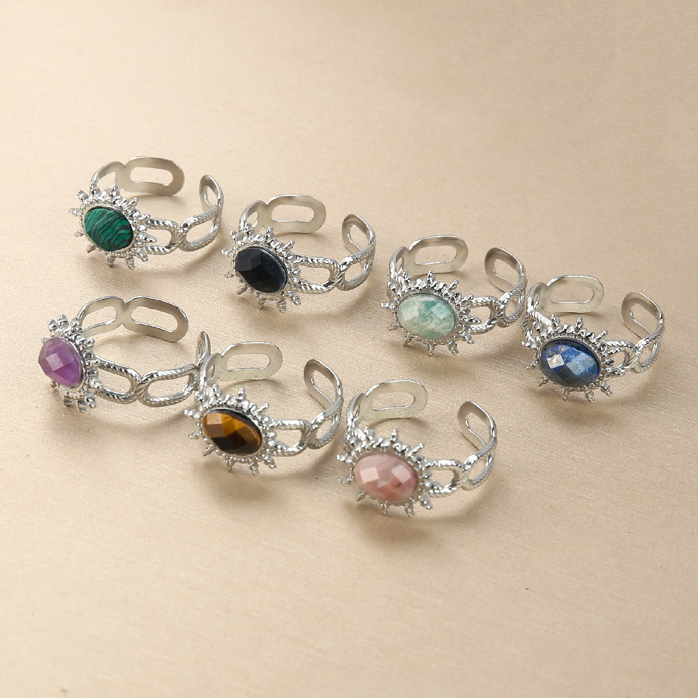 Gemstone Finger Ring, Sinc Alloy, le Gemstone, dath airgid plated, jewelry faisin, dathanna níos mó le haghaidh rogha, 20.24x14.17x25.20mm, Díolta De réir PC