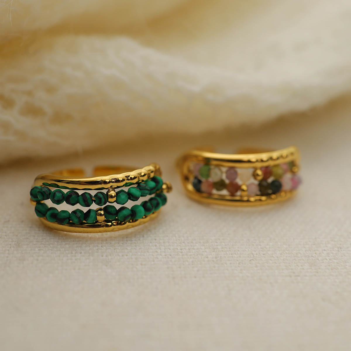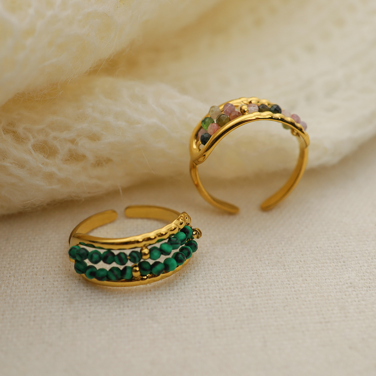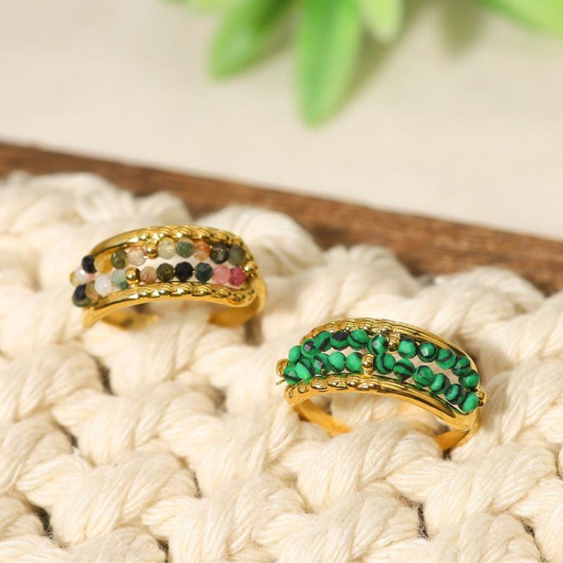 Gemstone Finger Ring, 304 Cruach dhosmálta, le Malachite, plátáilte, ábhair éagsúla do rogha & do bhean & log, órga, Díolta De réir PC
