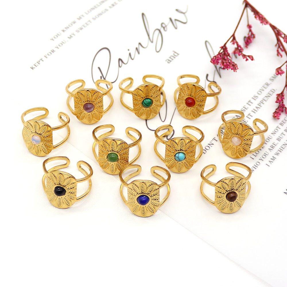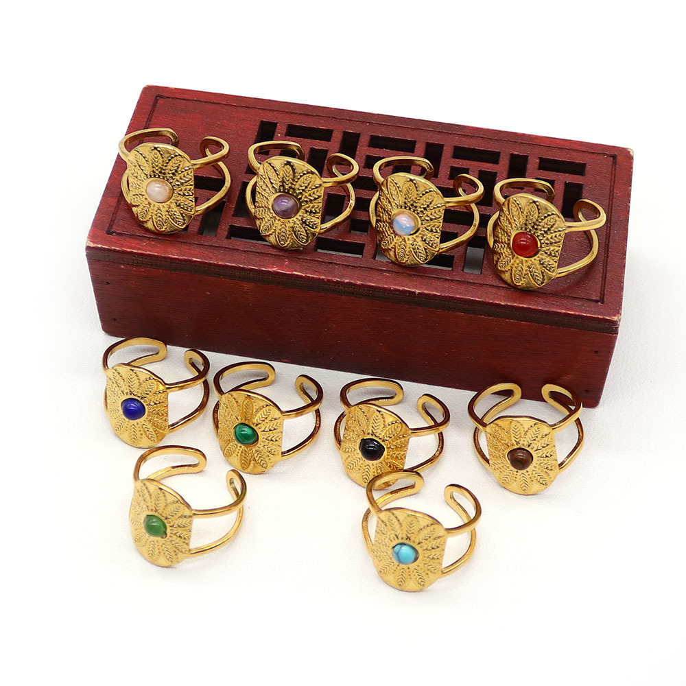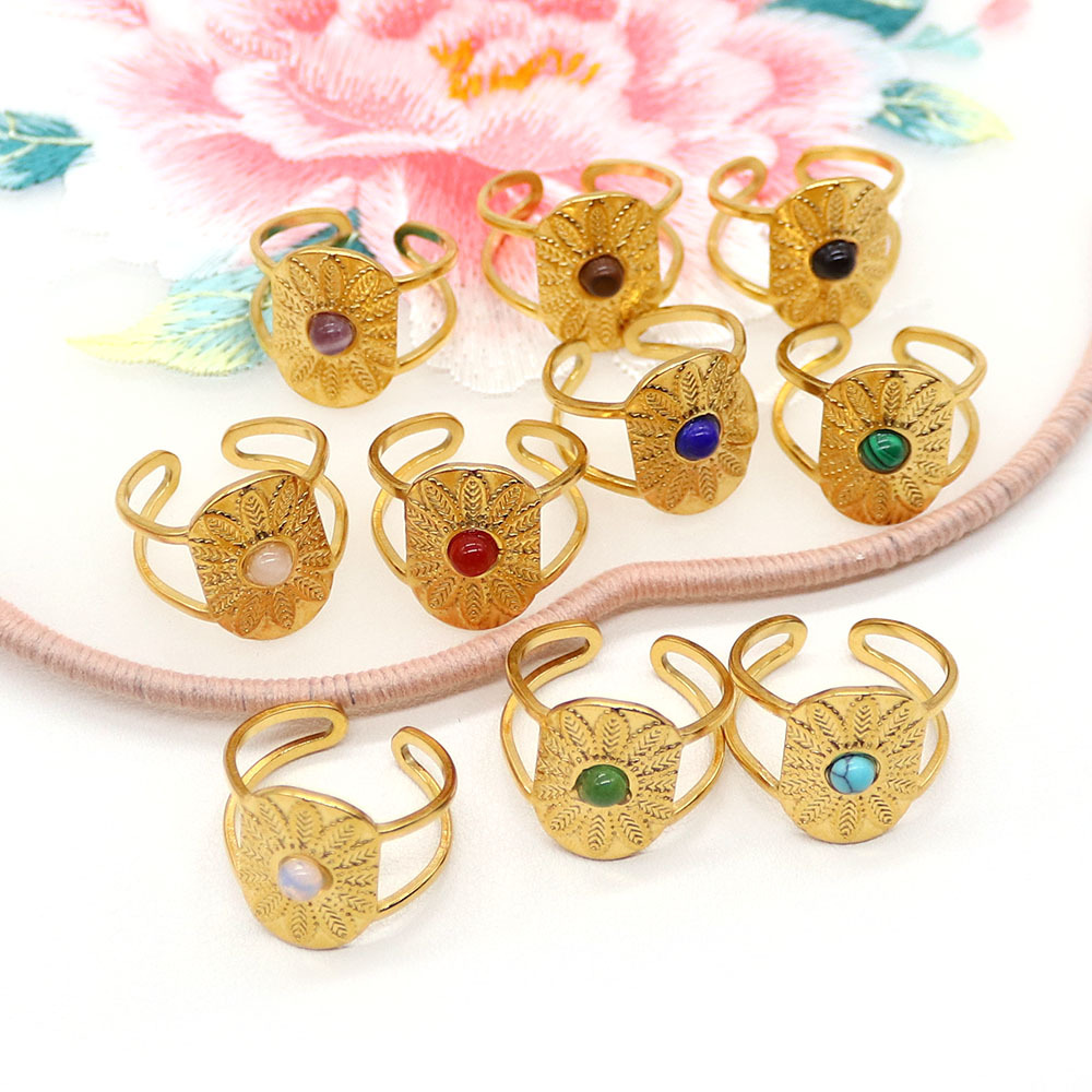 Gemstone Finger Ring, 304 Cruach dhosmálta, le Cloch Nádúrtha, dath an óir plated, jewelry faisin, dathanna níos mó le haghaidh rogha, 21x18mm, Díolta De réir PC